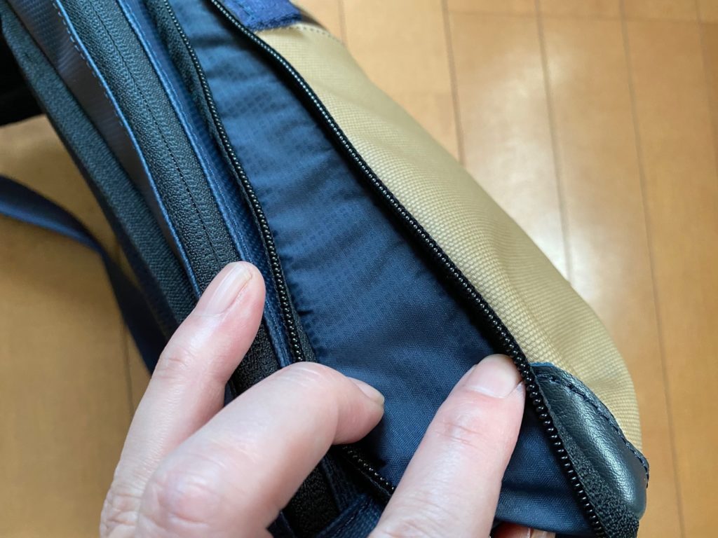 メインコンパートメントはファスナーが大きく開くので、中身の荷物の取り出しがスムーズに行えます。