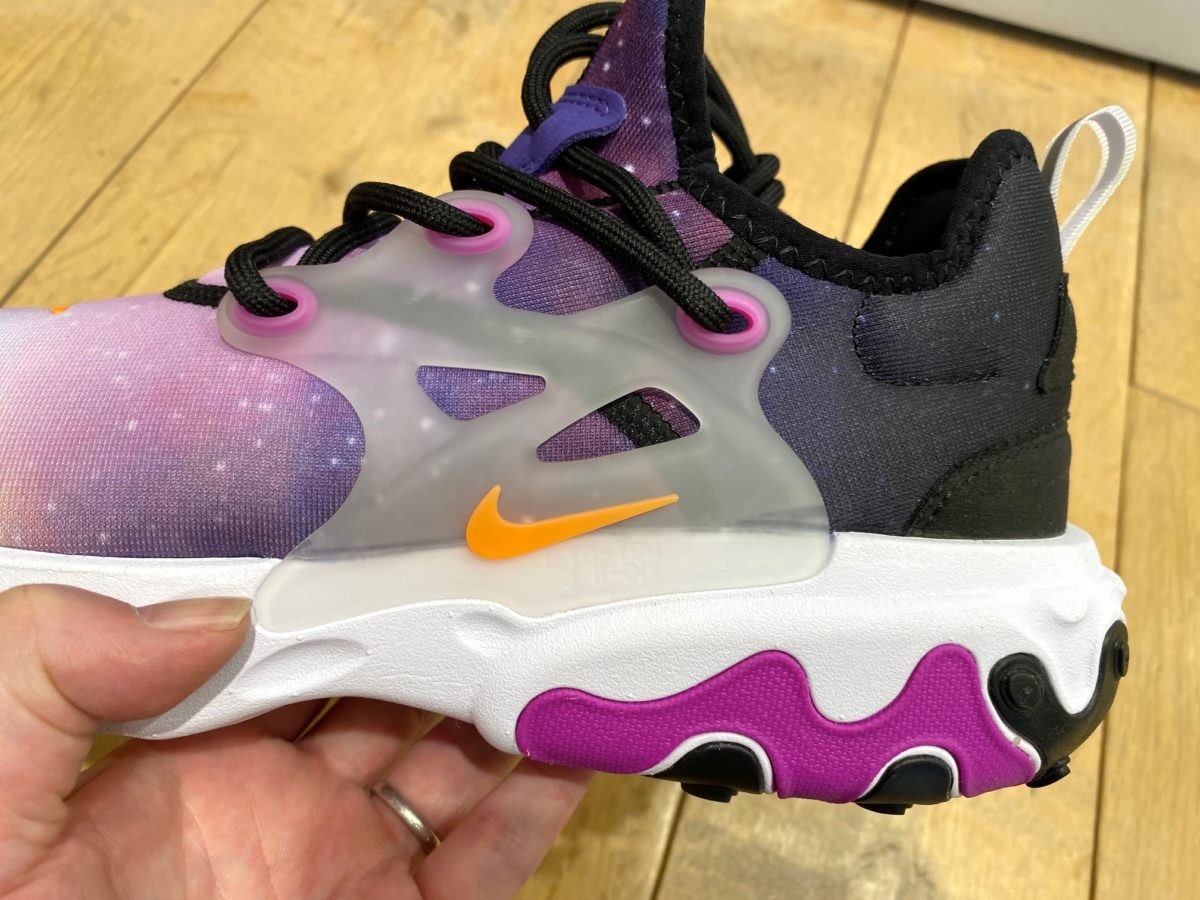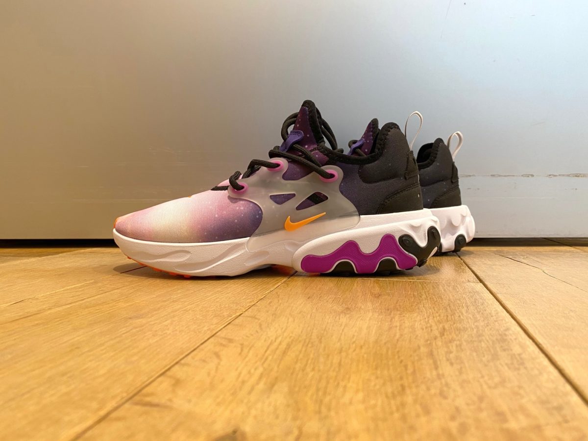 そうです、こちらはエア プレストのアッパーと、「リアクト エレメント」のソールをドッキングさせたフュージョンモデル「ナイキ リアクト プレスト」なのです。 ちなみにリアクト エレメントは2018年に登場したシューズで、ミッドソール内に部分ごとに異なる反発力のフォームを内蔵して安定感を飛躍にアップさせた、ナイキが誇る先進のソールテクノロジーを採用してます。「エア マックス 95」のアッパーと「ヴェイパー マックス」のソールを掛け合わせたハイブリッドモデルも話題となりましたが、実はリアクトソールを搭載したフュージョンモデルも存在しているのです!