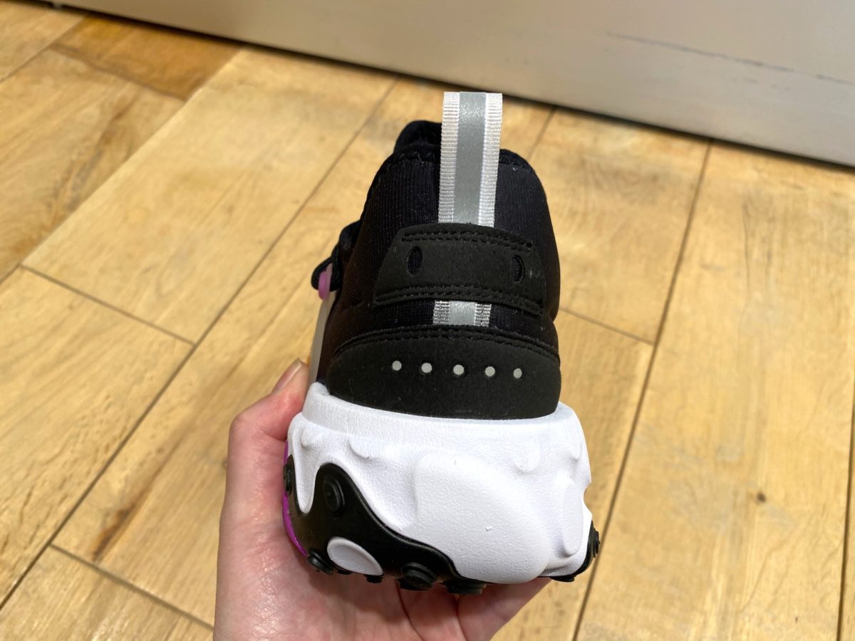 複雑な凹凸を設け、深い部分は柔らかく、浅い部分は硬くと強度に変化をつけることで安定したクッション性を実現した、リアクトソールに履き替えられています。見た目だけじゃなく履き心地もアップデート!