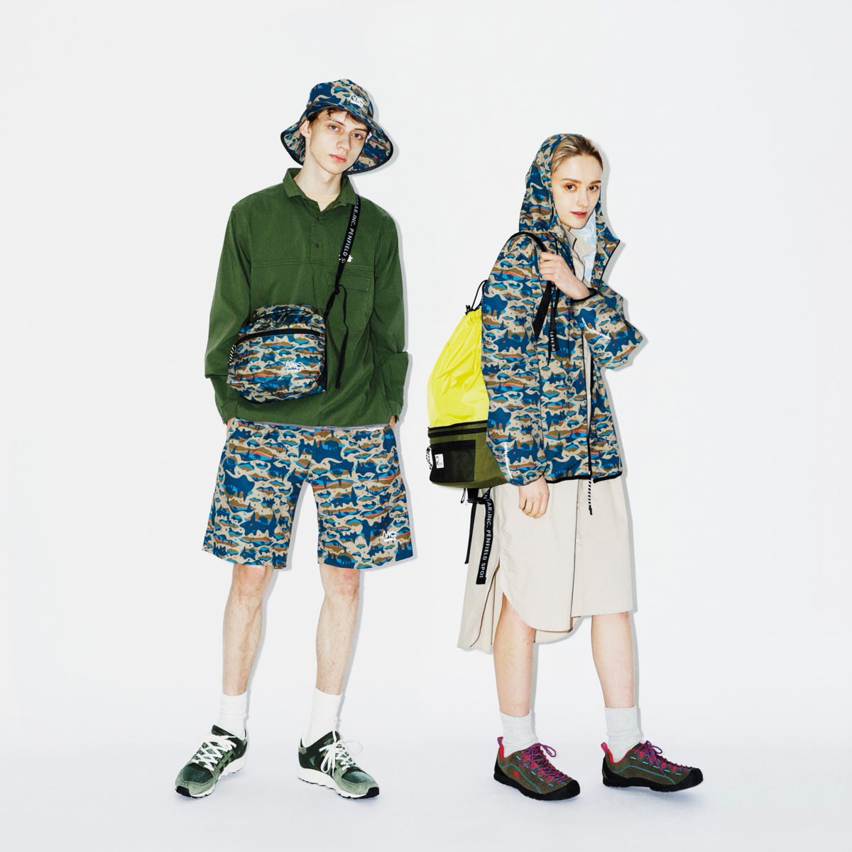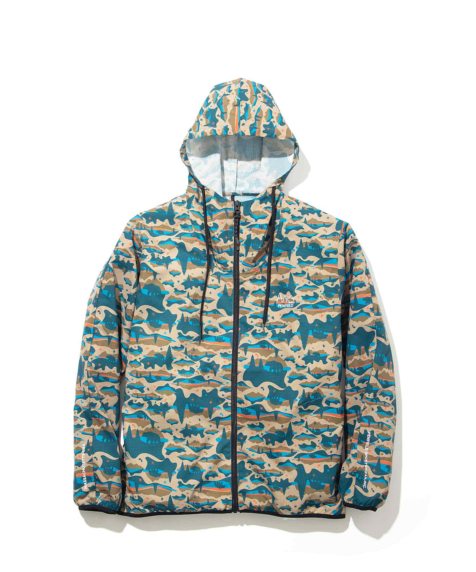 「ドットエア パーカー」は、メッシュ素材とリフレクタープリントが特徴。動きやすく、撥水性があるので野外での活動にぴったりのアウターです。ZIPフロントのデザインで、レトロ調の配色を施したカラーやペンフィールドのアイコンであるクマをモチーフにしたカモ柄など全4色展開。ユニセックスで着用できるアイテムです。