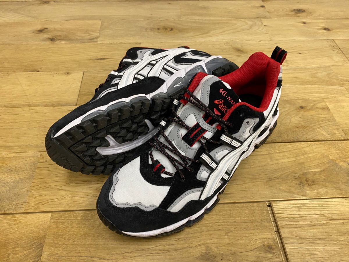 こちらはかつて発売されたトレイルランニングシューズ「ゲル ナンディ」をベースに、よりモダンな素材やフィッティングでアレンジを加えたアップデート版となります。アッパーはリップストップメッシュに、波打つようにカットされたスエードパーツが重なり合って、オリジナルの特徴的なデザインを再現。もともとエッジの効いたハイテク感あふれるオリジナルが、モノトーンカラー&素材感でまとめることで、シックで大人な雰囲気へと進化しています!