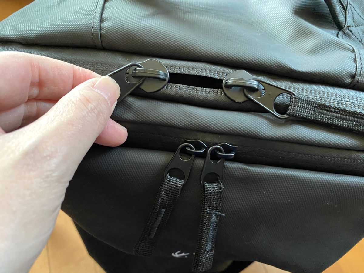 表面のすべての収納口には、止水ファスナーが採用されており、表面の素材と合わせて、防水性能をさらに高めています。