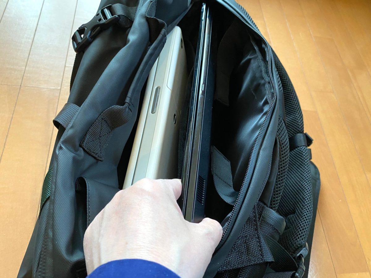 13インチと15インチのノートPC用のポケットが2つも設けていて、PCバッグとしての役割もバッチリ果たします。
