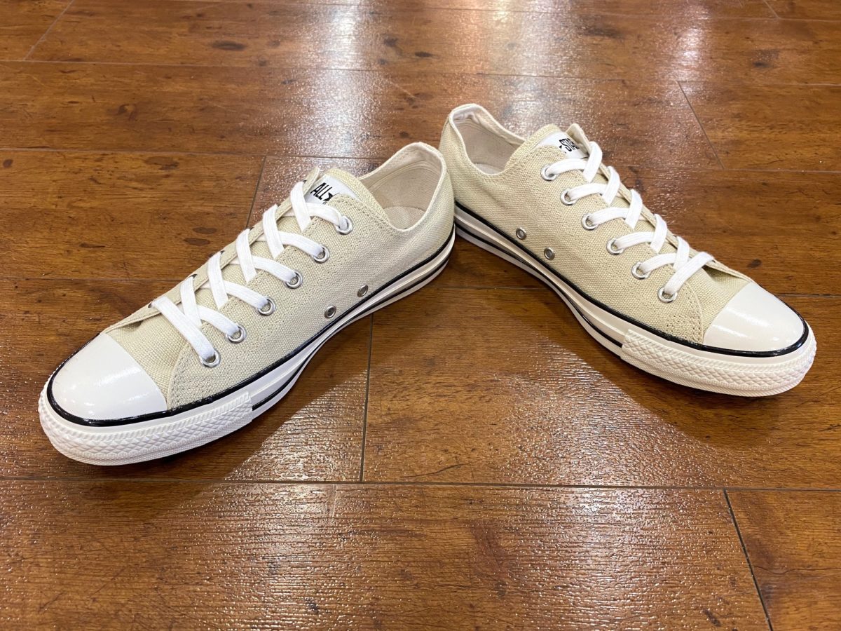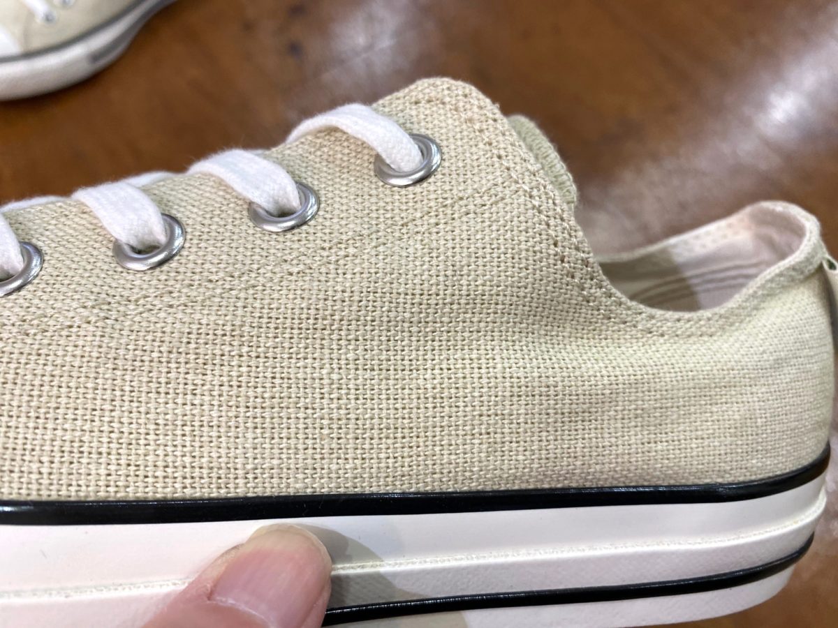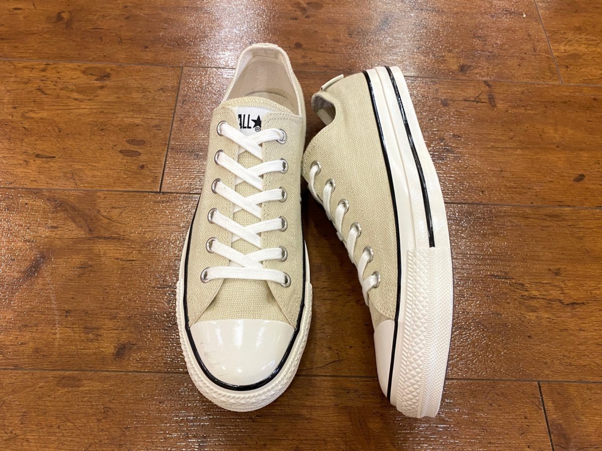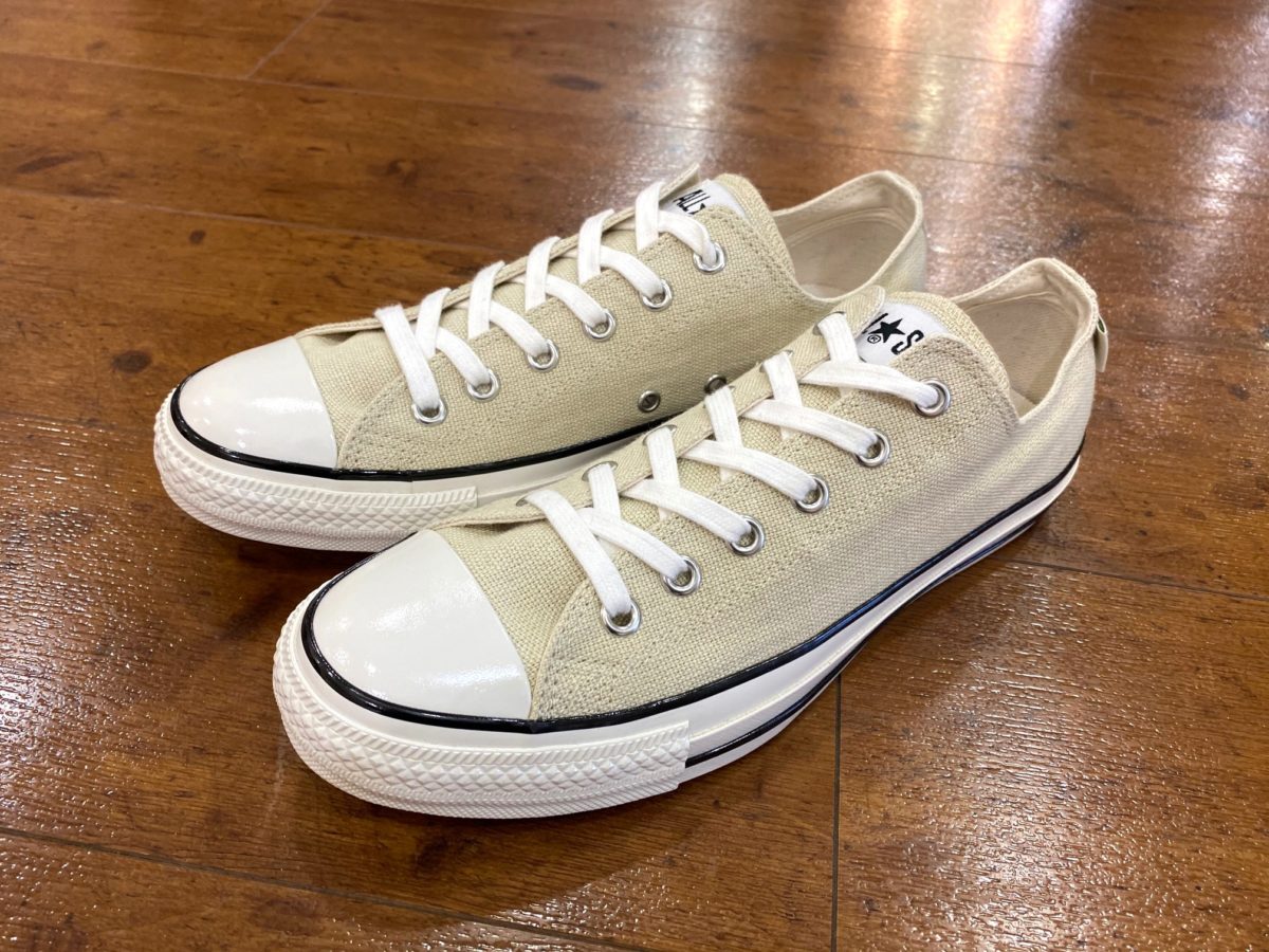 パッと見はいつものオールスターですが、ヘンプの素材感やU.S. ORIGINATORならではのディテールで風格が確実にアップしていますね! ヴィンテージ感も加わってシックな雰囲気なので、これからの季節増えるショーツスタイルを、大人っぽくひと味加えるのにもピッタリな一足です!