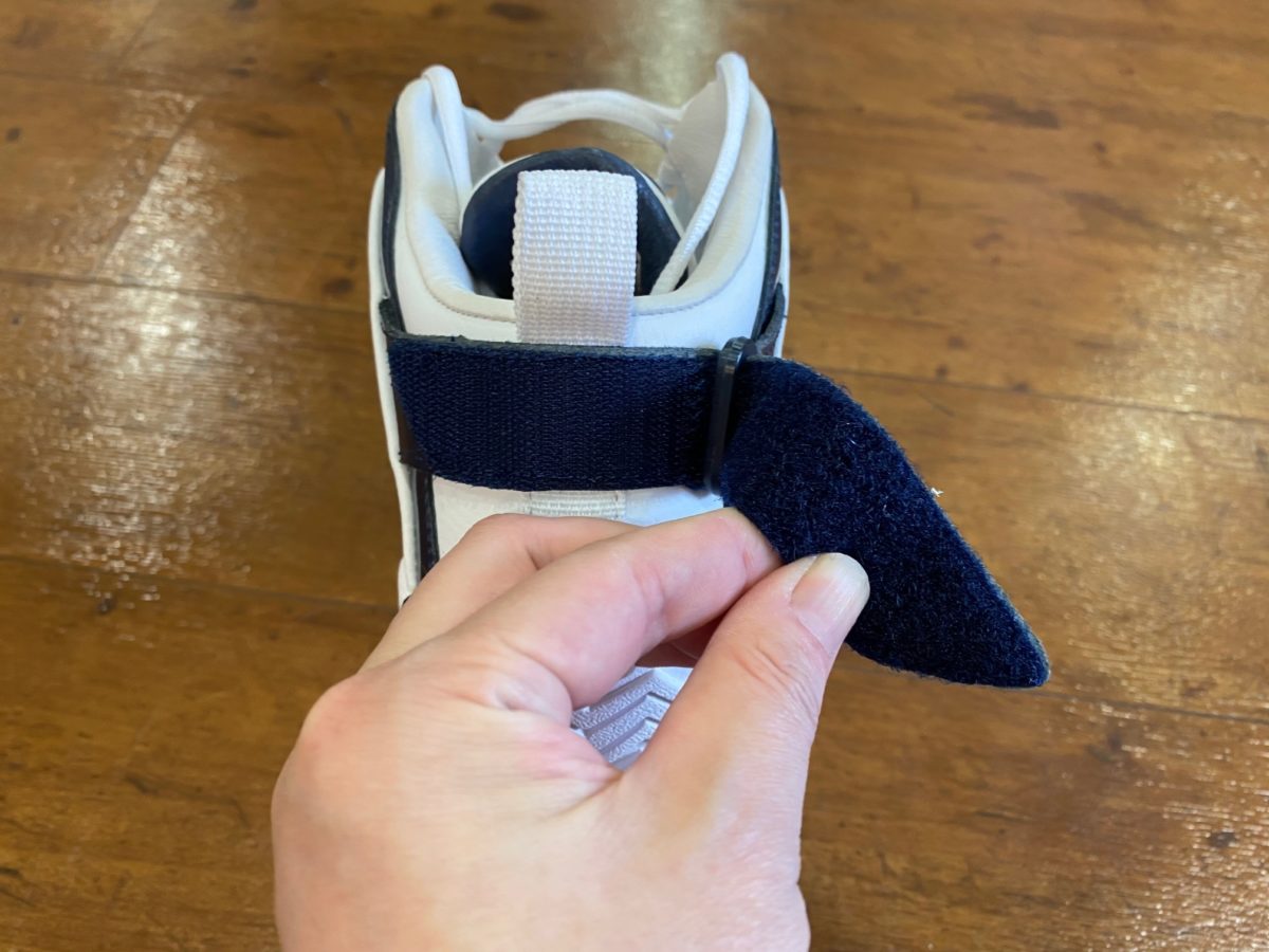 ヒールには面ファスナーストラップを設けていて安定性とホールド力を高めています。