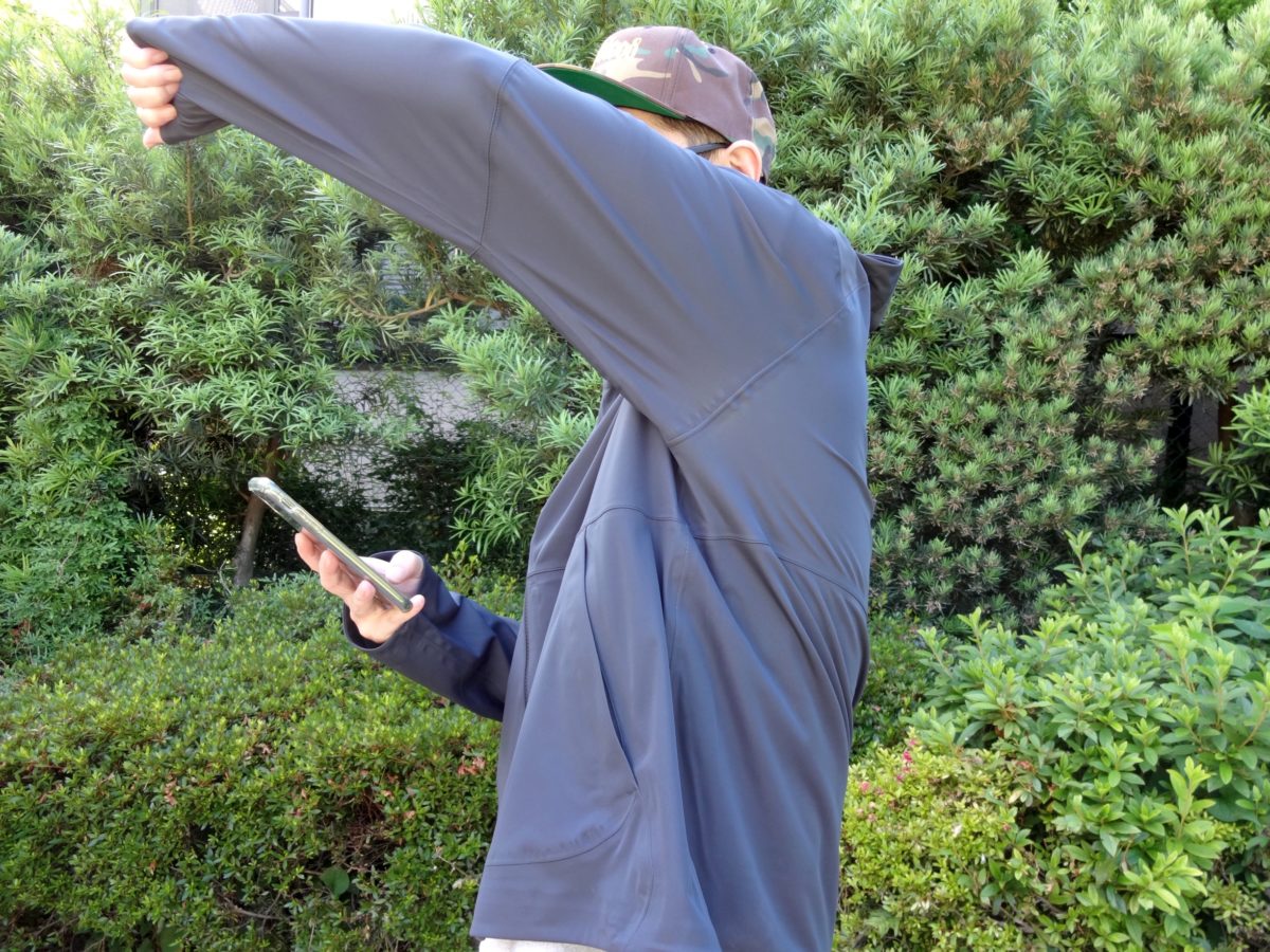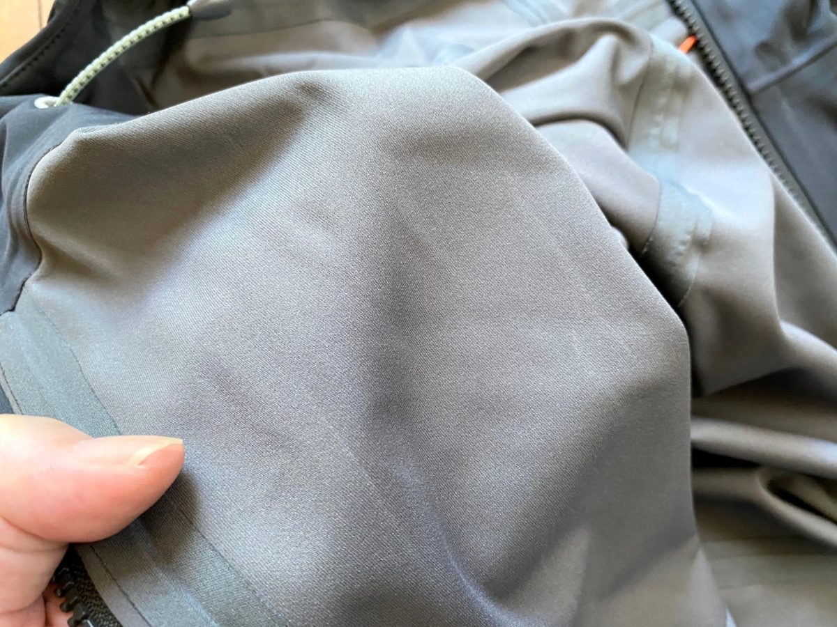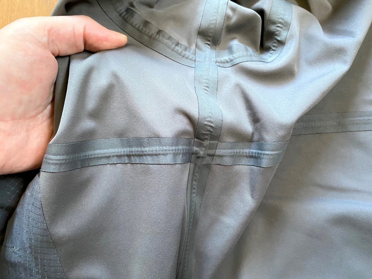 アームの付け根などボディの切り替えし部分にはシームテープが設けられていて、防水性をさらに高めています。