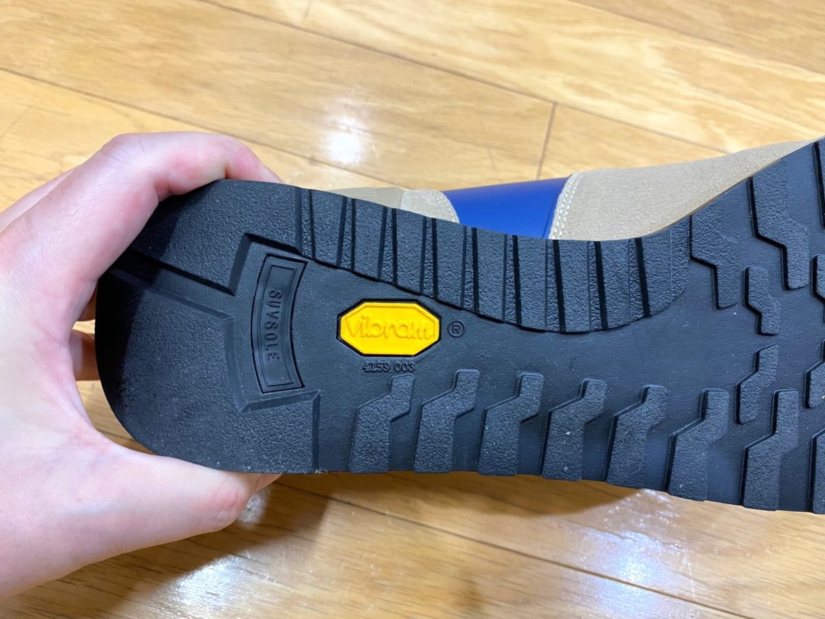 ビブラム社製のラバーアウトソールには凹凸のメリハリを効かせたトレッドパターンが配されていて、悪路でも高いグリップ力を発揮します。