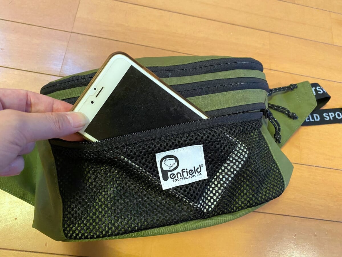 フロントにはメッシュポケットも着くので小物やスマホの収納にも便利ですね。