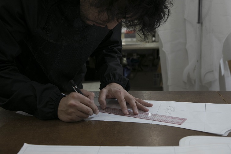 ⑤注文した商品ごとに、デサントの研究開発拠点「DISC OSAKA(ディスク オオサカ)」においてパタンナーが型紙を作成し、水沢工場の職人が一つひとつ裁断・縫製。ネームタグには「MADE TO MEASURE」のロゴとシリアルナンバーも入った自分だけの特別な1着が完成します。