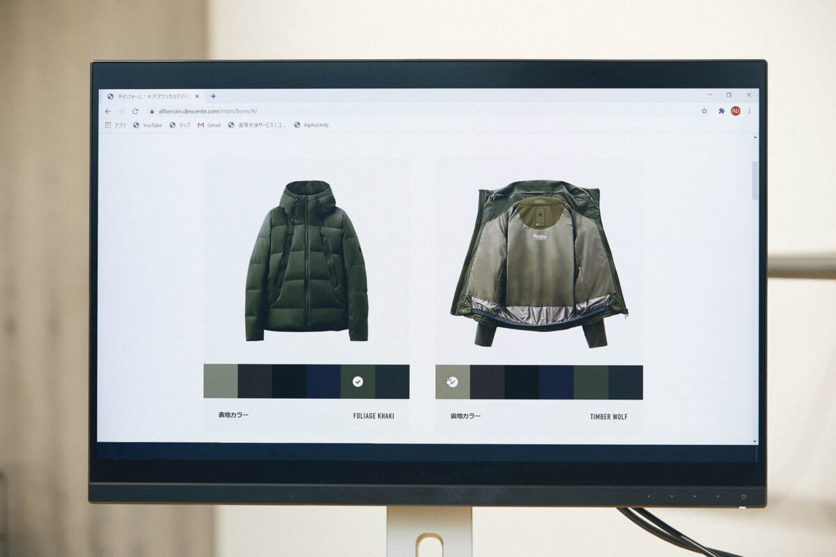 今回のカスタマイズサービスでは、「水沢ダウン」の中でもハイスペックな定番モデルである「マウンテニア」において、表地と裏地の色の組み合わせや身幅、着丈、裄丈のサイズを自身の好みに合わせて決めることができます。カスタマイズの手順は以下の通りです。