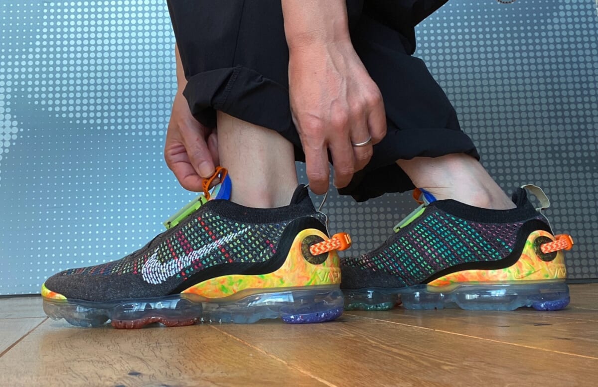 2017年にそれまでのエア マックスシリーズの集大成として登場した「エア ヴェイパーマックス」。ミッドソールを廃したことで、まるで空気の上を歩くような新感覚のライド感と屈曲性を兼ね備えた履き心地、そして近未来的なルックスで大ヒットしました。そんなエア ヴェイパーマックスをベースに、サステナブルな要素を組み込んだ新作「エア ヴェイパーマックス 2020 FK」が登場したんです!