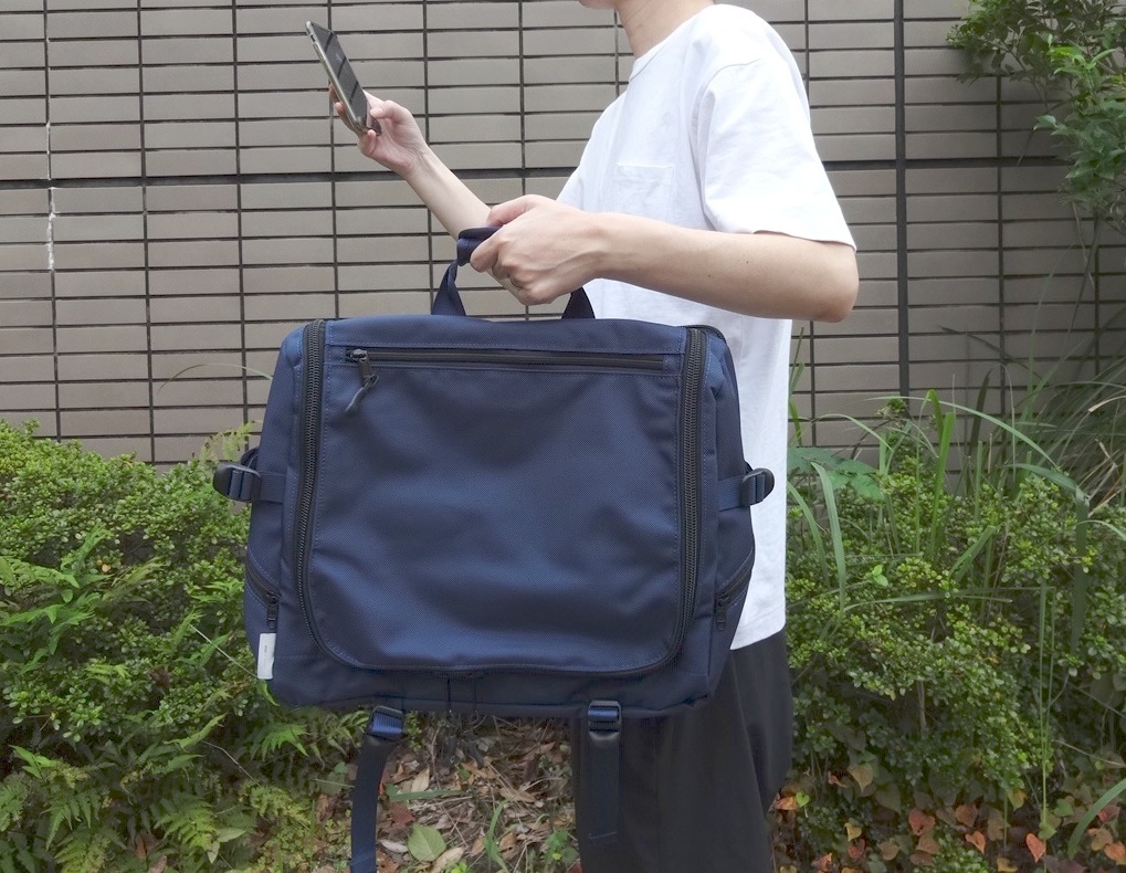 ショルダーストラップは脱着可能なので、ブリーフケースとして使えばよりビジネスっぽい雰囲気になります。