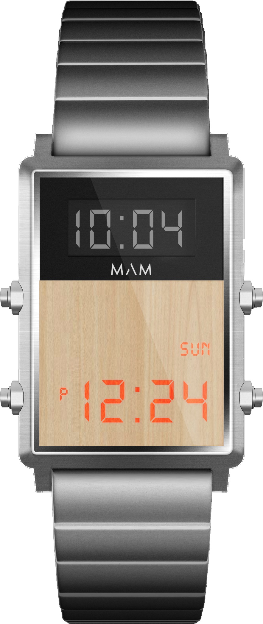 マムは約1年半以上の時をかけ、映画誕生より35周年を迎える今年、2020年に発表。劇中に主人公のマーティ・マクフライが愛用しているデジタル時計を元にアップデートされたデザインは、プッシュボタンで画面がアクティブになり、ウッドのディスプレイに表示される時刻によって、過去と未来のタイム・ディスプレイを彷彿させます。