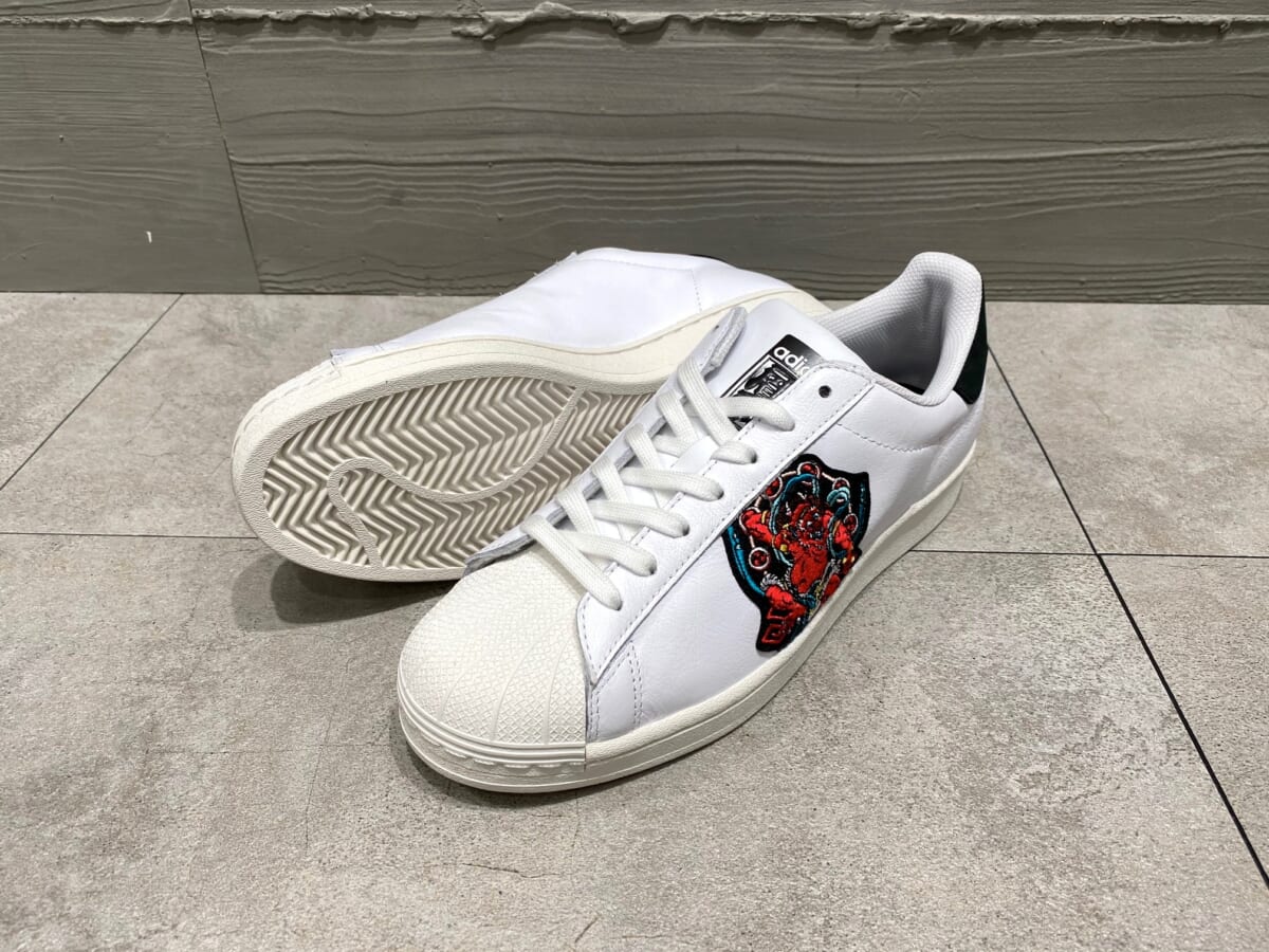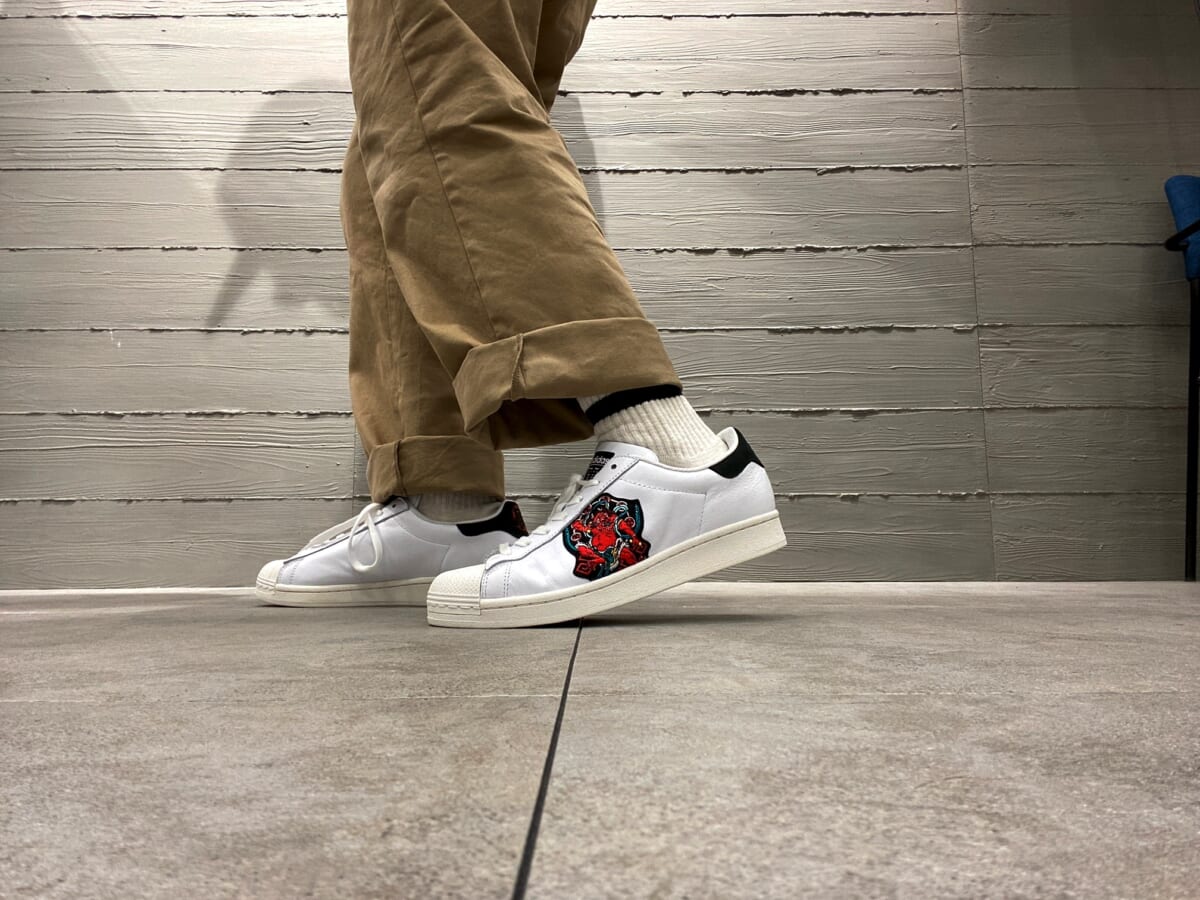 スーパースターならではのオーセンティックなフォルムと雷神風神の精巧な刺しゅうが絶妙にマッチしていますね。ドープな雰囲気もプンプンと溢れているので、ストリートスタイルの足元にピリッとひと味スパイスを効かせる一足となっています!