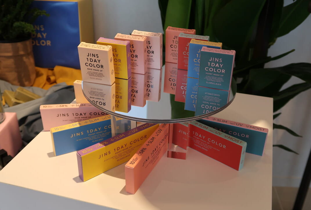 ジンズ ワンデー カラーは、ヘアメイクアップアーティスト林由香里氏監修のもと開発。着色部分をレンズで挟み込むことで色素が直接目に触れることなく装用可能な「サンドイッチ構造」を採用することで品質を担保しながら、「カラコン=メイク」と定義し、繊細な色味と発色にこだわることで、大人の女性が着けたいと思えるカラコンとなっています。毎日使えるナチュラルカラー「BASE MAKE UP」と、雰囲気を変えるアクセントカラー「POINT MAKE UP」の2つのシリーズ。さらにそのシリーズの中でも各4色ラインナップしています。