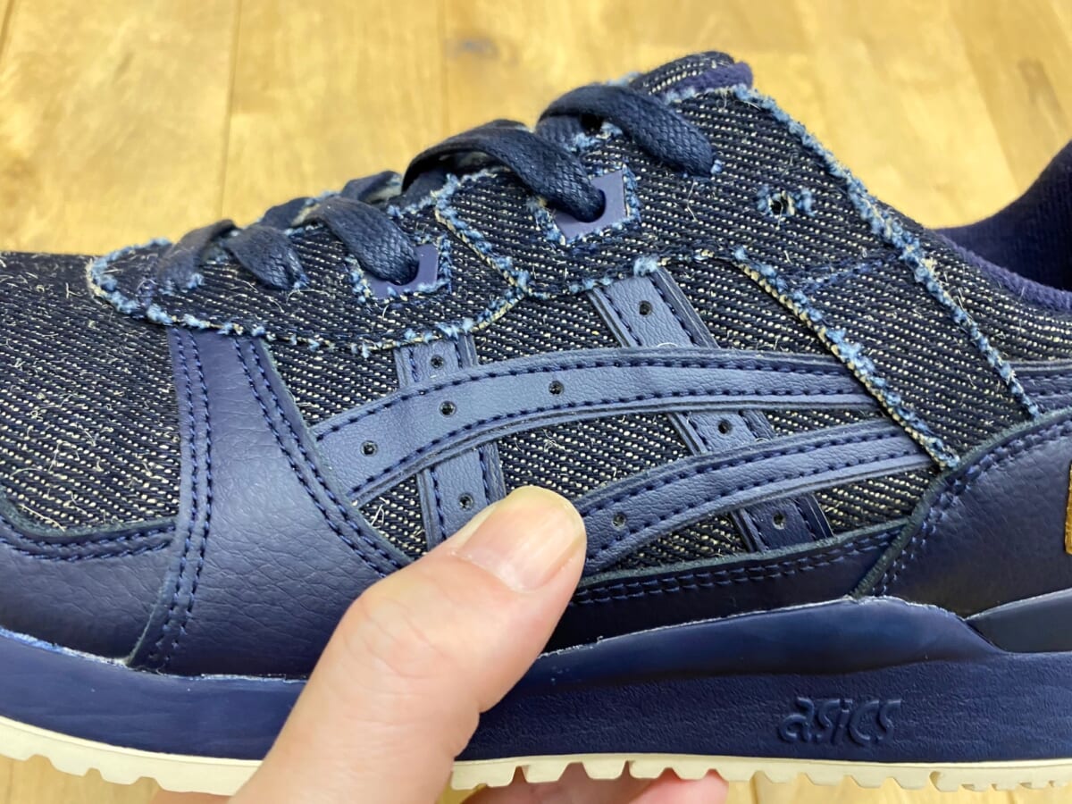 本作はランニングシューズに使用される衝撃緩衝材「GEL」によるクッション性、独自のスプリットタンは継承しながらも、スタイリングの決め手となるデザイン性を大幅に進化。今作は岡山デニムを採用した特別な仕様で、大人の足元にふさわしいシックな一足へと仕上げられています。