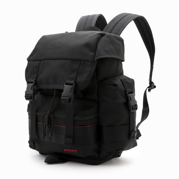 フロントポケットにはカラビナの装着など汎用性を高めるウェイビングテープが配されていて、ブリーフィングを象徴するレッドのラインが入っています。