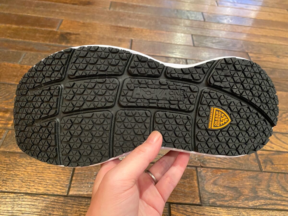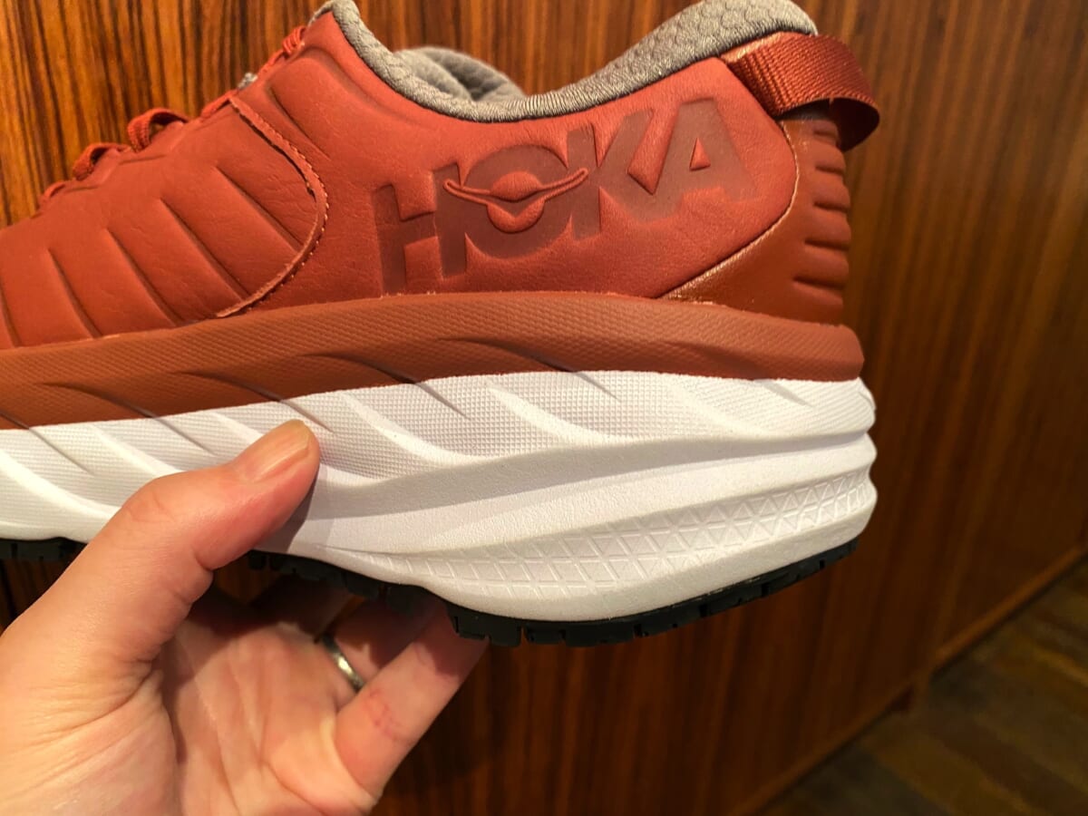 “元祖厚底ソール”で知られるホカ オネオネならではのボリューム感あるEVAミッドソールによるクッション性に加え、ボンダイ SRには滑りにくいアウトソールを搭載。業界標準に照らしてテストされた独自のアウトソールコンパウンドを誇る本作は、ビジネスからウォーキングまで幅広い要望に応える、高い滑り止め効果と完全接地型のラバーソールを搭載しているのです!
