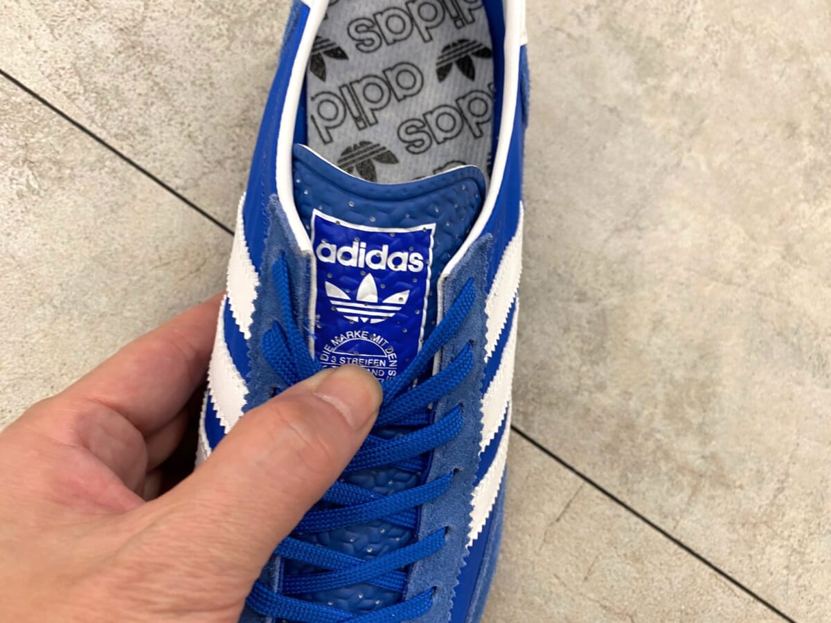 お馴染みのスリーストライプスはヴィンテージモデルならではのギザギザ仕様を採用。