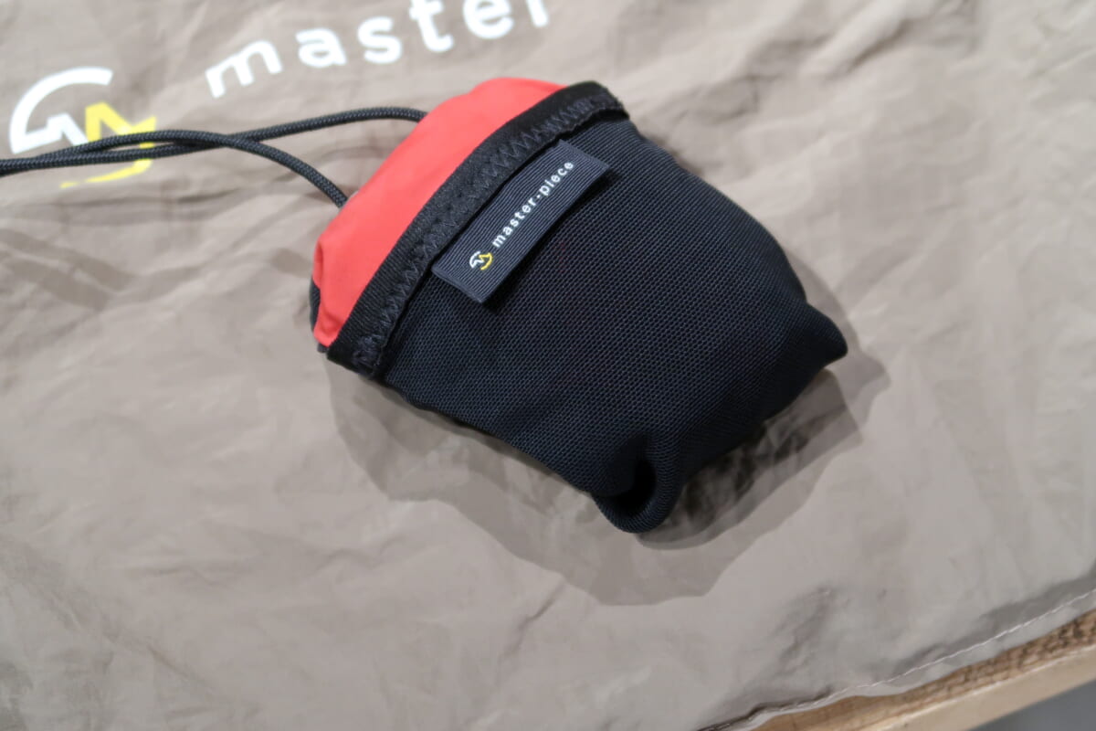 マスターピースが作ったエコバッグは、優れた伸縮性と環境に優しい素材ソロテックス(R)を使用しています。メッシュポケットのなかにあるコードを引っ張るだけで、簡単に小さく収納できる便利さが魅力。そのコードは肩や首に掛けることができるので、アクセサリー感覚でエコバッグを持ち歩くことができるんです。
