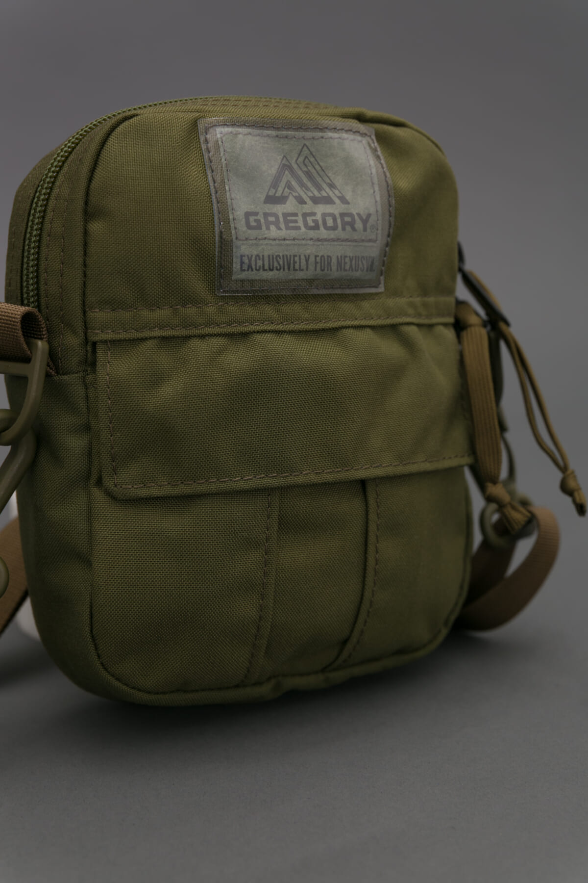 今回のエクスクルーシブ企画は、随所にミリタリーの要素が取り入れられています。ボディカラーには、NEXUSⅦ.デザイナー今野智弘氏が、収集していたアメリカ軍のアリスパックからインスパイアされた、オリーブグリーンをベースに製作。タグもミリタリーのネームタグを意識し、オリーブグリーンに染められたタイベックにグレゴリーとネクサスセブンのロゴをプリントしたスペシャル仕様となっています。コーディネートのキーアイテムとしても活躍するミニバッグとなっていますね。