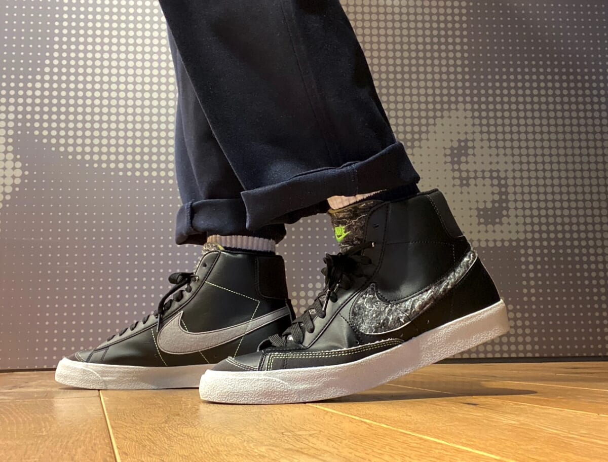1977年にナイキからバスケットボールシューズとして登場した「BLAZER(ブレーザー)」。サイドに大きめなスウッシュが大胆に配された、クラシックなデザインが特徴的です。最近ではナイキのスケートボードライン「ナイキ SB」仕様、イタリアのファッションブランド「Off-White」など人気ブランドとのコラボレーションモデルが登場したりと、常に熱い注目を集めています。そんなブレーザーに、リサイクル素材を使用したサステナブルパック「ナイキ ブレーザー MID ’77 ビンテージ」が登場しました!