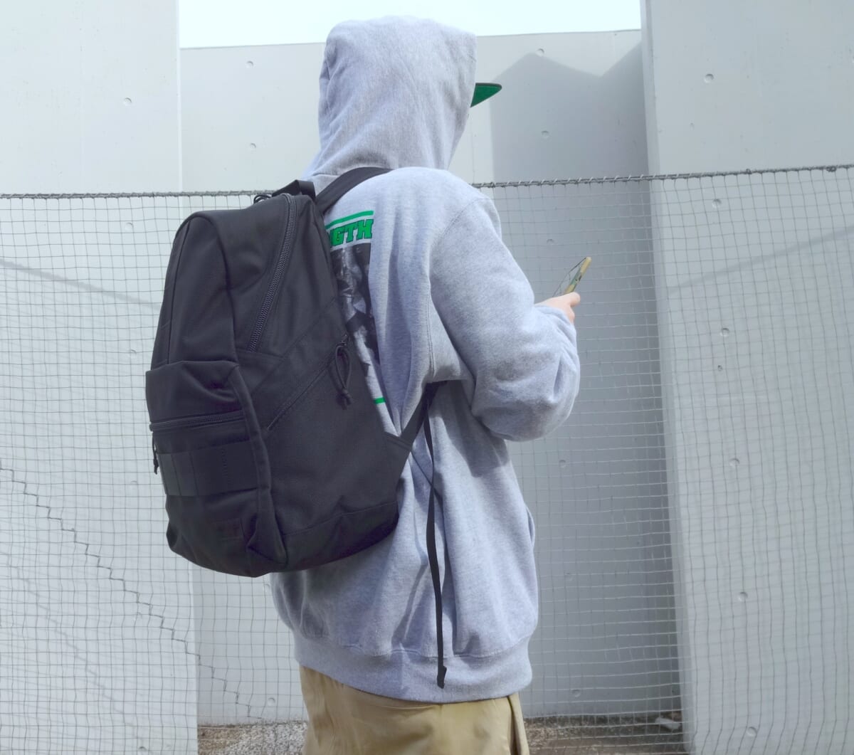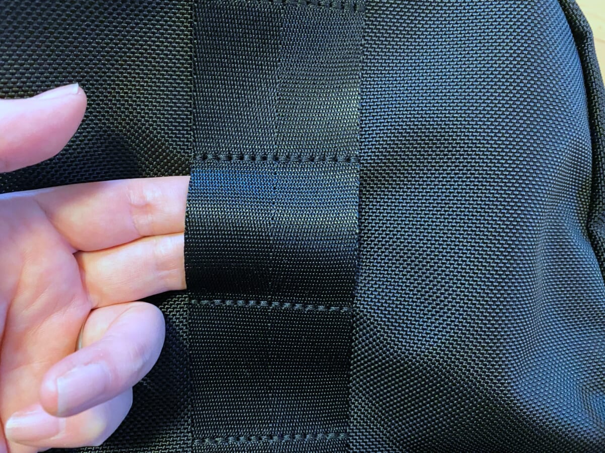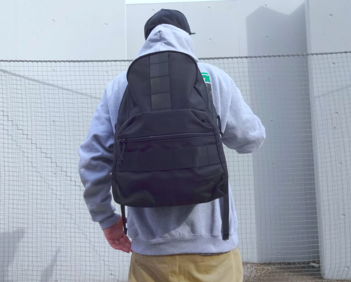 ボディ生地はブリーフィングが展開するマテリアルの中で最もヘビーな、強度や耐久性、耐摩耗性に優れたバリスティックナイロンを採用。そしてフロントのブランドロゴには普段ならレッドカラーでブランドロゴが配されていますが、本シリーズはブラックでまとめて超クール!
