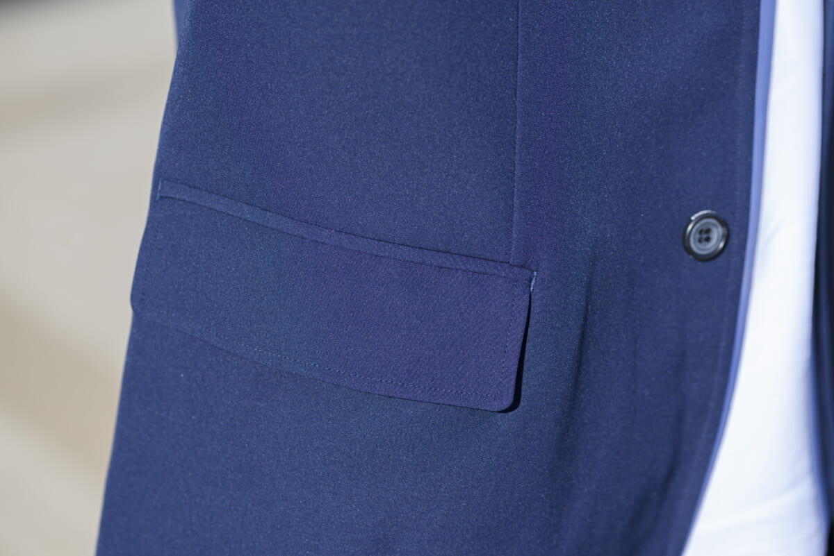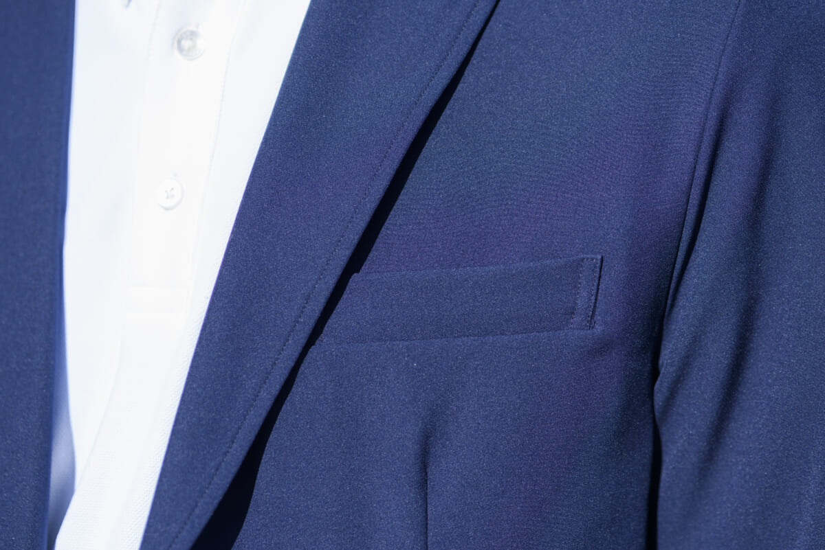 昨年から展開されている「THE CITY」コレクションですが、今回着てみた「THE CITY シティージャケット」は今季から追加されたもの。ストレッチ製の高い素材を採用している点は共通ですが、ディテールにバージョンアップが施され、さらにフォーマルな雰囲気が向上。見た目は完全にジャケットになりました。