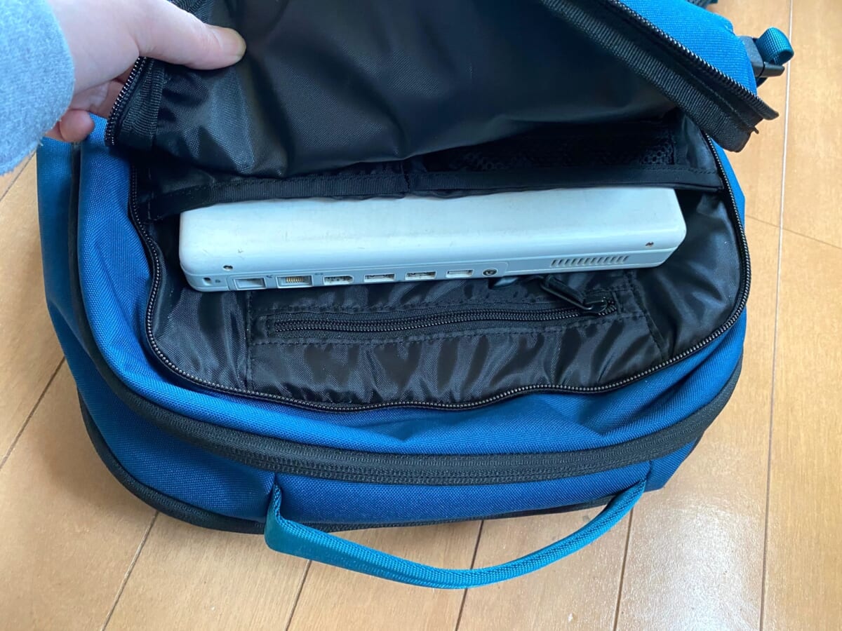 さらに大きめなフロントポケット内部にもノートPC用スリーブを設けているので、ノートPCを2台持ち運ぶことができます。