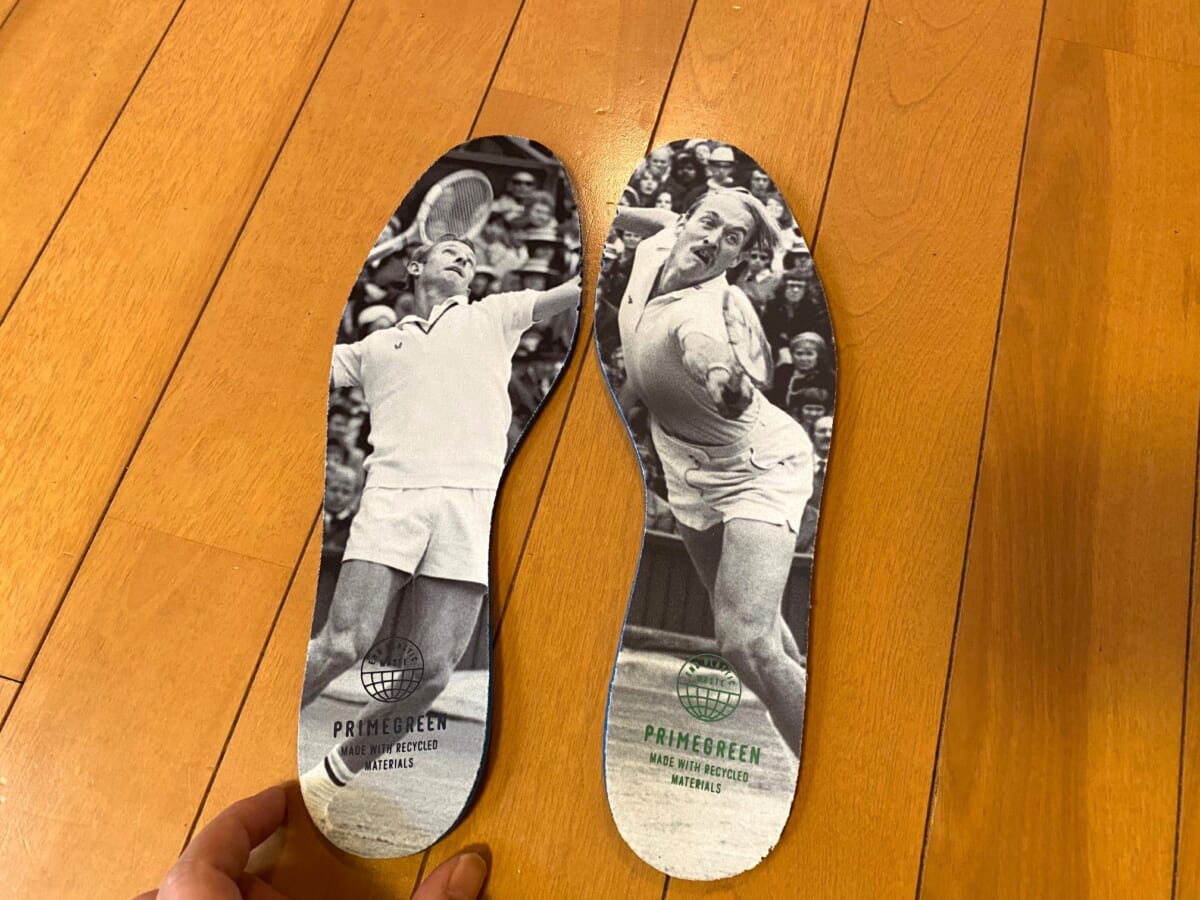 左足のインソールにはロッド・レーバーのフォトプリント、右足にはスタン・スミスのフォトプリントを配しています。