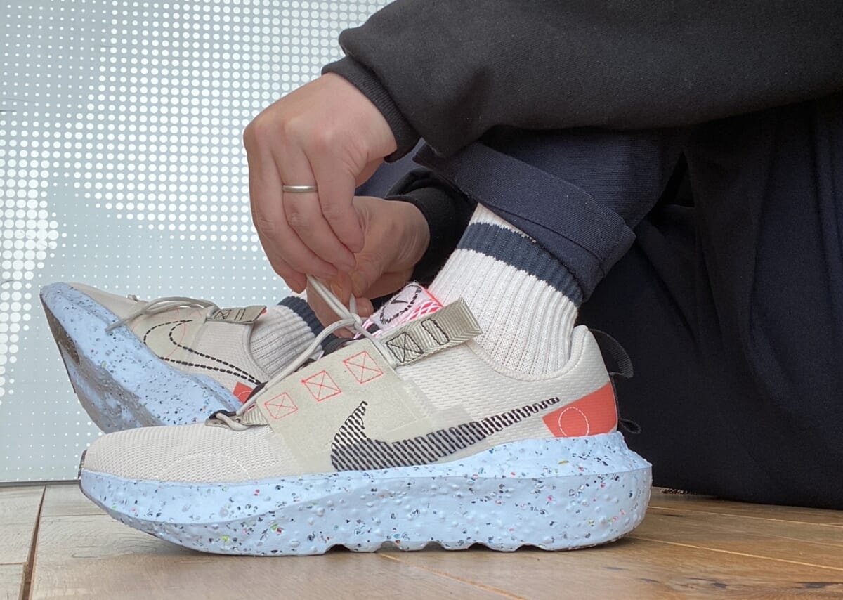 ナイキが「宇宙ゴミ」と捉えている、工場の床に廃棄されるスクラップを蘇らせ、循環性を重視したフットウェアを展開するコレクション「スペース ヒッピー」。素材のチョイスから生産方法、包装材など全ての要素で環境に配慮した取り組みです。“サスティナブルな社会”に向けて、プロダクトがスムースに循環することを目指したこの取り組みから、またもや新たな刺客が現れました。それが「ナイキ クレーター インパクト」です!