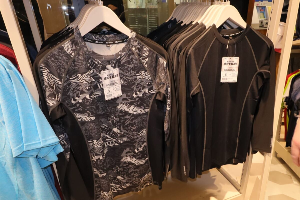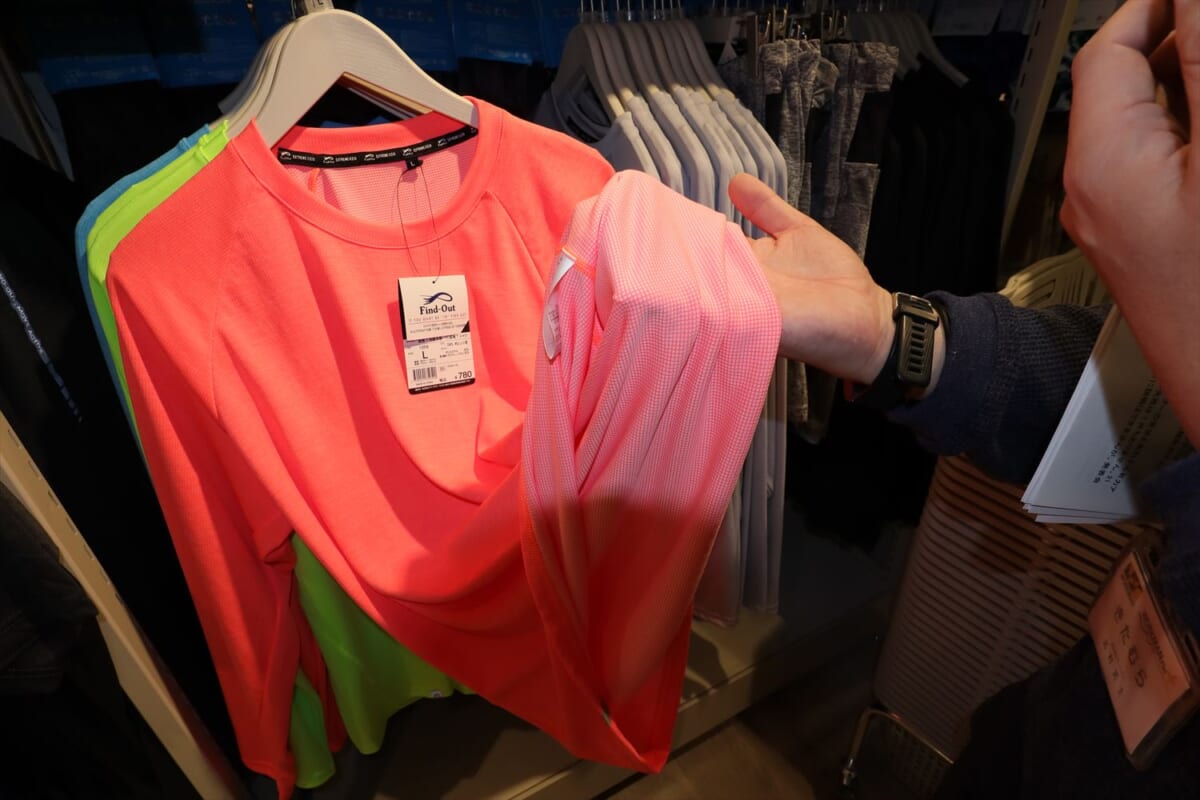 新作のスポーツウェアも紹介しましょう。「接触×持続冷感-1℃」Tシャツはこれからの季節に活躍しそうです。表面は速乾素材、裏面に独自開発の冷感素材「EXTREME ICE」を立体的に練り込み、運動して汗をかいてもひんやり感を持続。半袖Tシャツ580円、長袖Tシャツ780円。