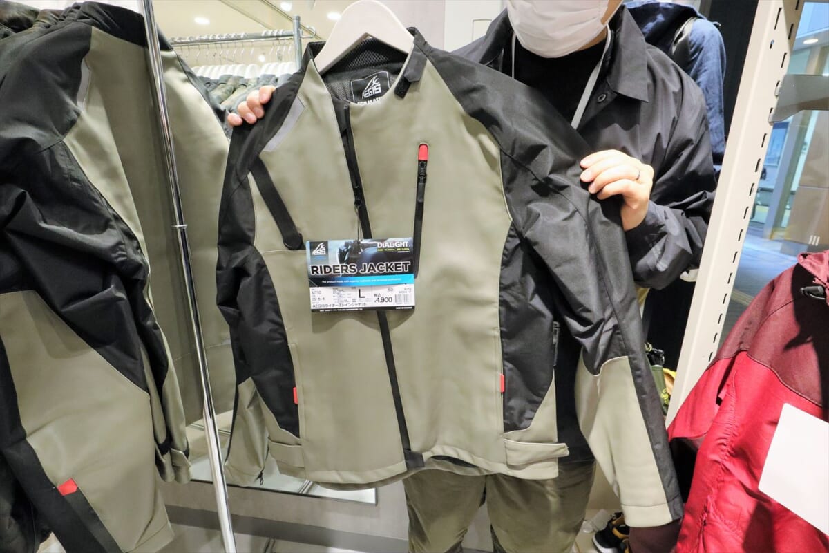 最後に、メディア向けに参考出品として出していただけで、すぐに引っ込めますと言っていた製品ですが、良い製品なので思い切って暴露しちゃいます。ワークマンの中の人が自分で着たいがために開発した「AEGIS(イージス)ライダーズレインジャケット」。防水・耐水圧1万5000mm、透湿度5000g/平方メートル/24hのDiALiGHT素材を使ったバイク乗りのための防水ジャケットで、高い防水性を持ちながら見た目は革ジャン風に仕上げているため、晴雨関係なくそのまま着こなすことができます。限定生産であり、限られた店舗に限られた数しか入荷しないそうなので、ライダーは見つけたら即買いしましょう。
