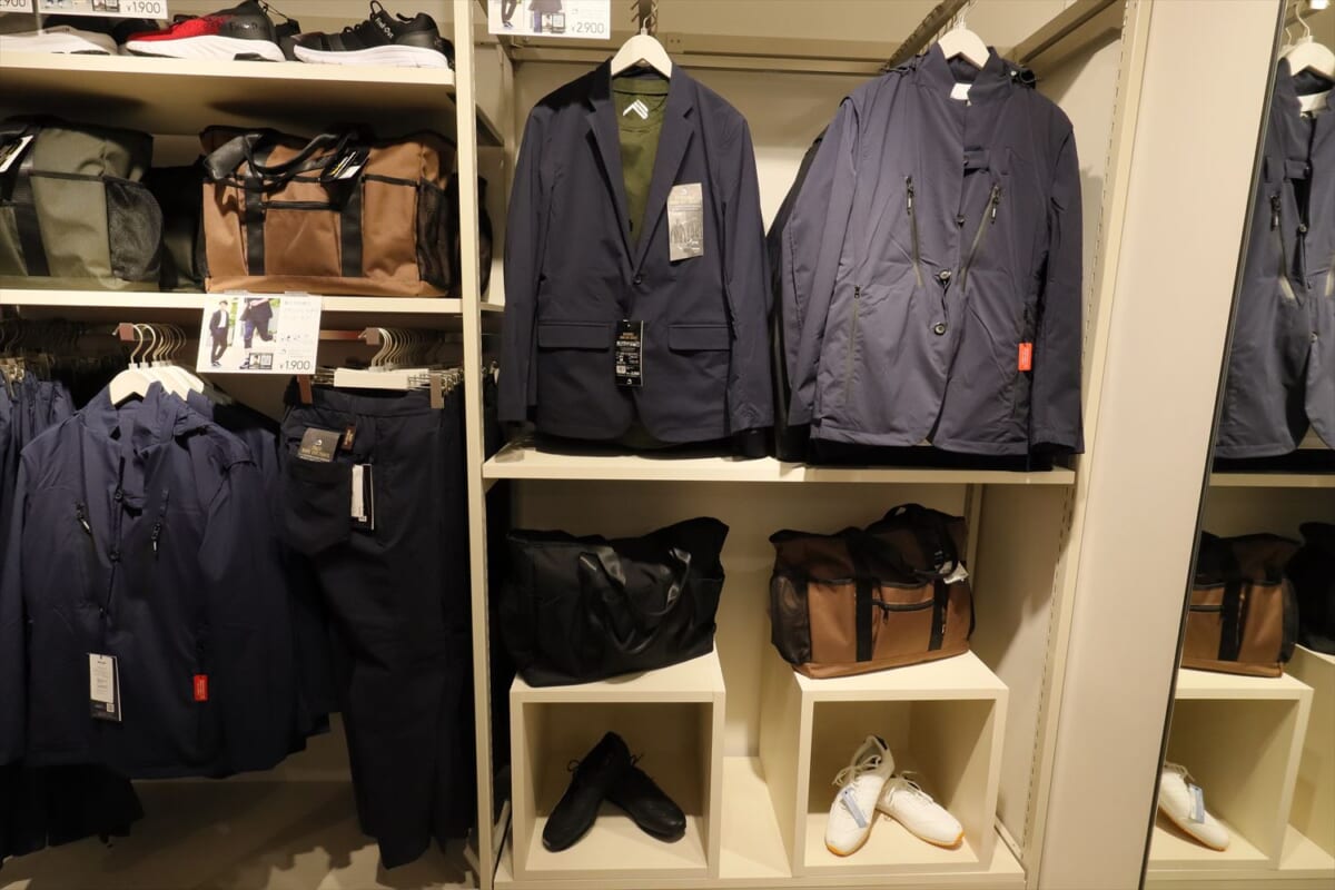 「#ワークマン女子」店は、店名に女子が入っていても、実は男性用ウェア4割、男女兼用ウェア2割の展示内容となっており、男性も楽しめる店舗です。路面店のようにワークウェアを扱っていない分、スペースに余裕があって見やすく選びやすいのが特徴です。