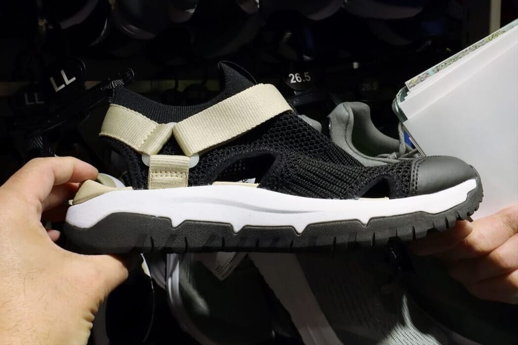 シューズでもう一つ注目したいのが「走れるJOGサンダル」。ソールはクッション性に優れた3層構造、アッパーに伸縮性と通気性の高いニット素材を採用しています。足首をがっちりホールドするバンドにより、真夏の暑い時でもランニングやウォーキングが快適。ソールがしっかりしているのでカヤックなどの水辺のアクティビティにも使えます。