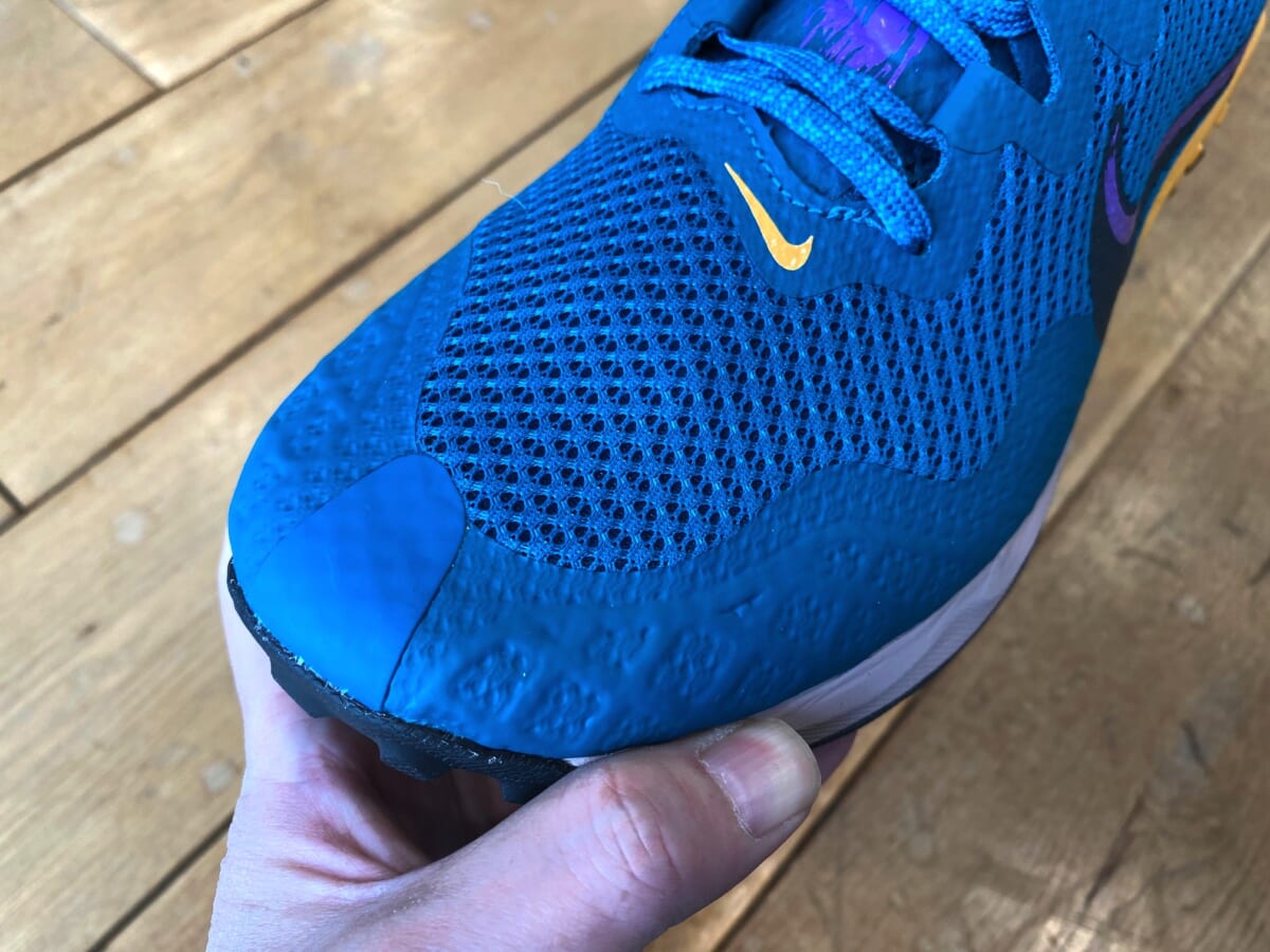 最新版となるナイキ ワイルドホース7は、アッパー全体はメッシュで構成して、通気性に優れた涼しい履き心地をキープ。さらにトウ部分には耐久性に優れたラバーを配して、起伏のある地形に対応します。