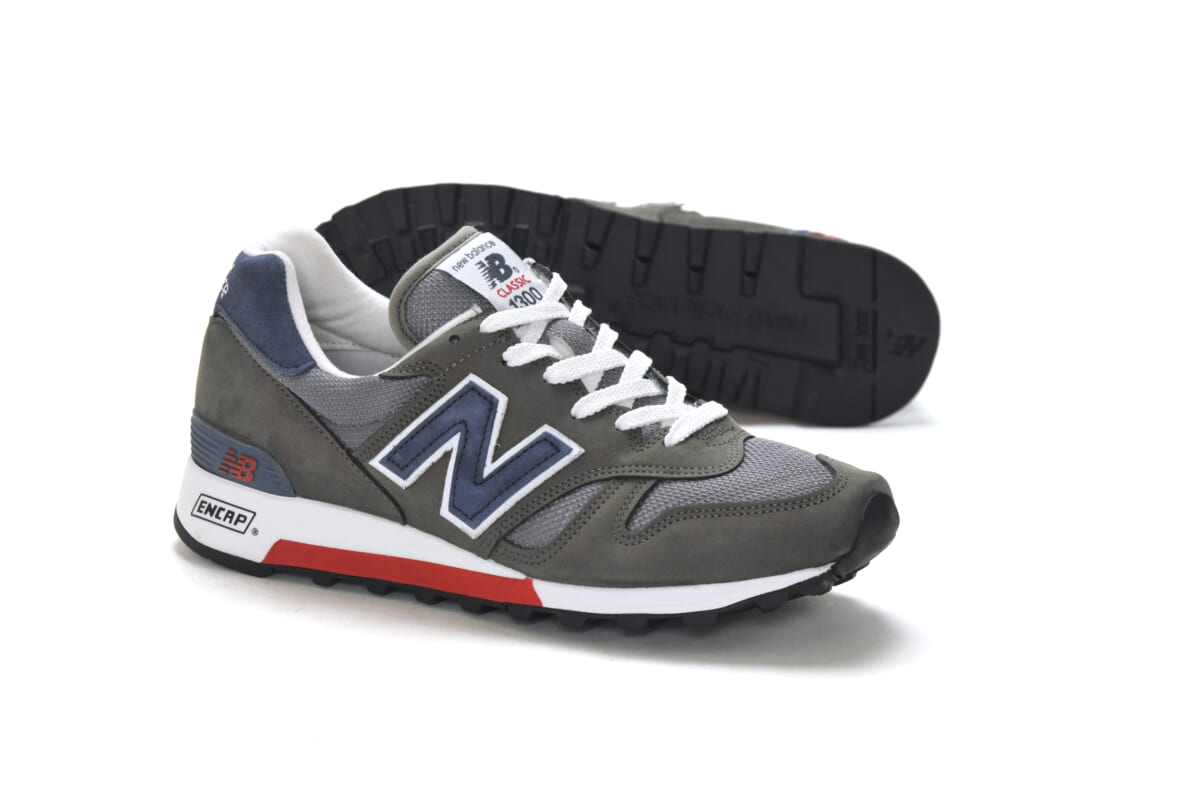M1300はその優れたクッション性や、ブランドを象徴するグレーカラー、オーセンティックなデザイン、そしてクオリティの高いヌバックレザーとメッシュのコンビネーションが、当時のランナーだけでなくファッションシーンや多くの文化人からも注目を集め、その履き心地が称賛されました。アメリカで130ドル、日本では3万9000円という当時のランニングシューズ市場では類を見ない価格も話題を呼んだモデル。その派生モデルがM1300CLです。