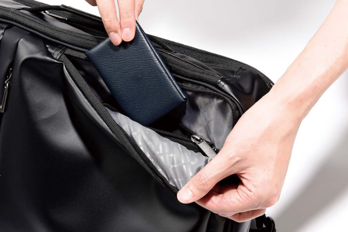 鈴木 ショルダーハーネスは内部に収納できるので、移動中はリュックとして背負い、クライアントに会うときはブリーフケース風にヨコ持ちする、といったフレキシブルな使い方も可能ですよね。
