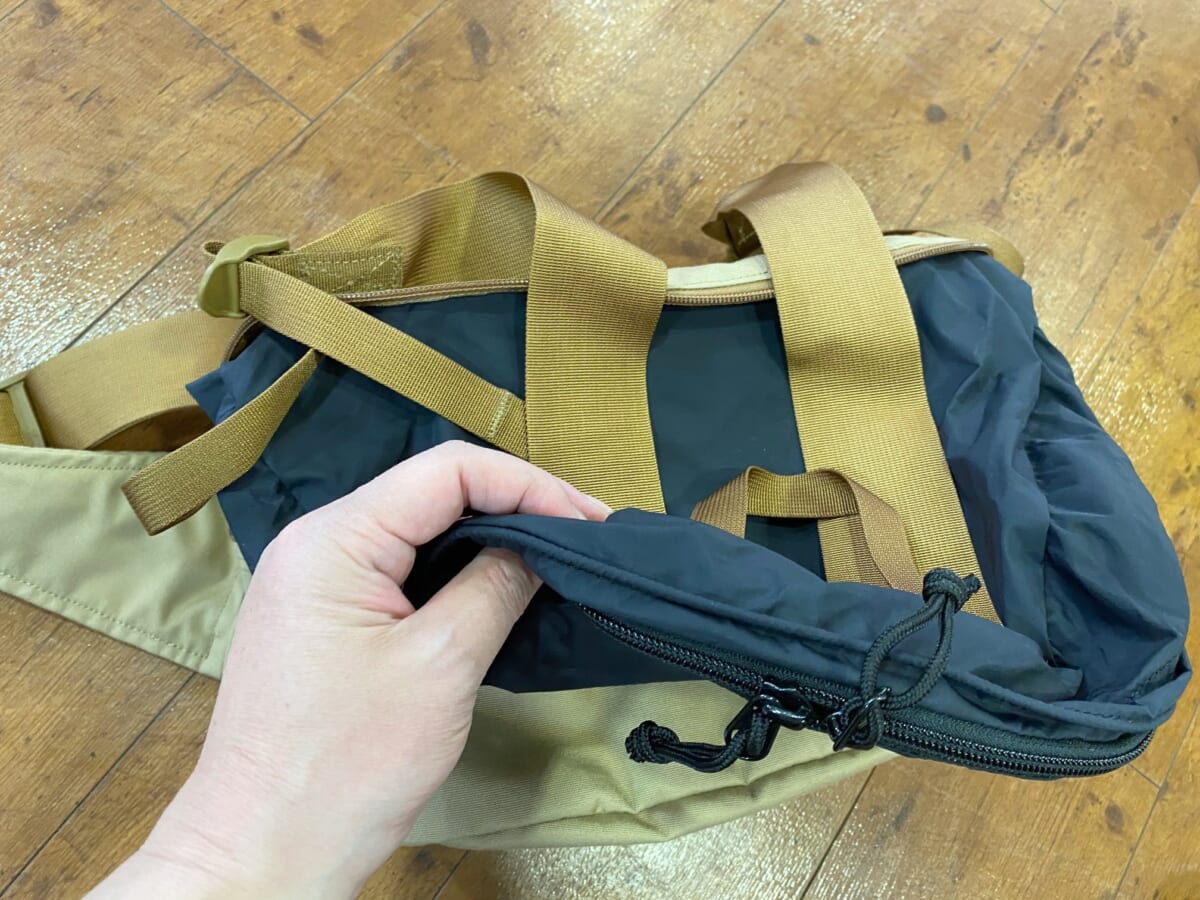 本作は、山で活躍するレンジャー部隊をイメージした「マウンテンレンジャー (MR)」シリーズから登場したボディバッグ。ポリエステル製でありながらコットンのような肌触りを実現した本体の生地が特徴的です。マウンテンレンジャー部隊をイメージしているとあって、ミリタリーフレーバーとレトロな雰囲気がバランス良く共存し、大人のアウトドアスタイルにピッタリな表情へと仕上げられていますね。