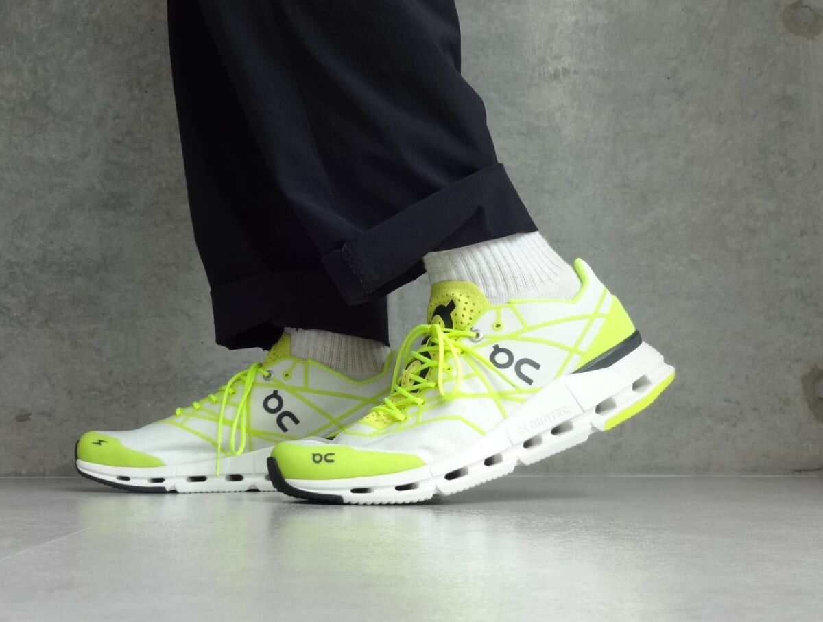 オンならではの世界特許技術もしっかりと搭載しているから、性能や履き心地は申し分ありませんね。そして何よりも惹かれてしまうのは、ビビッドなネオンイエローのアッパーデザイン。ショーツなどのシンプルなボトムスが多くなりがちなこれからの季節、絶好のアクセントに機能してくれるでしょう。