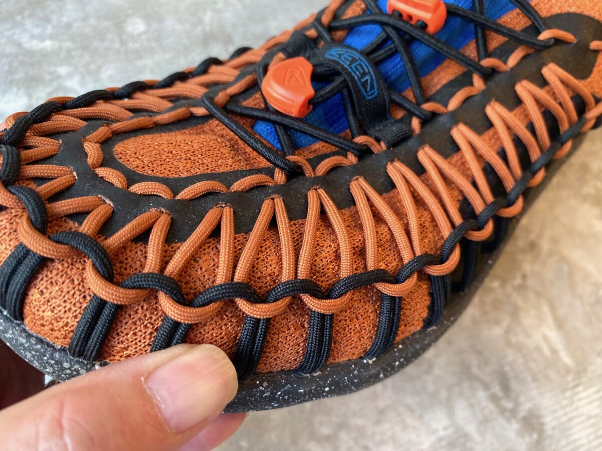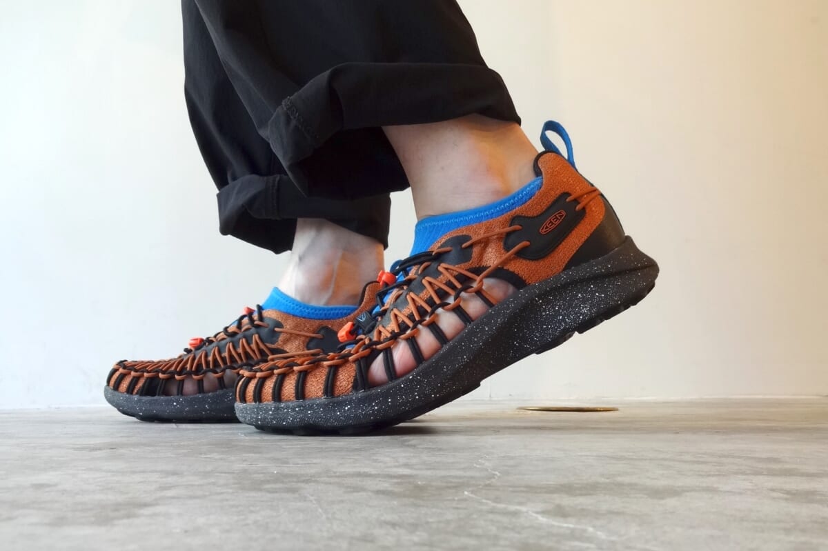 2013年に初代モデルが登場し、今や夏の足元の定番となっている、キーンの「ユニーク」。 こちらは2本のポリエステルコードを編み込んでアッパーを構成する「インターロッキングコードシステム」(特許取得済み)によって、伸縮性のある2本のコードが足全体をソフトに包み込み、激しい動きにもしっかりと対応してくれます。コード製アッパーならではの優れた通気性で、サンダルとスニーカーの中間的シューズといえます。そんなユニークをベースによりスニーカーテイストを強めた「ユニーク スニーク」というモデルが存在し、今回はそちらを試してみました!