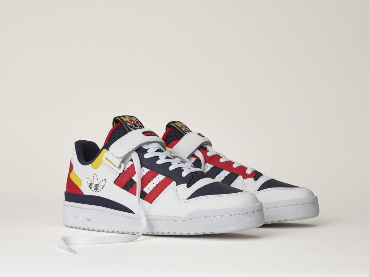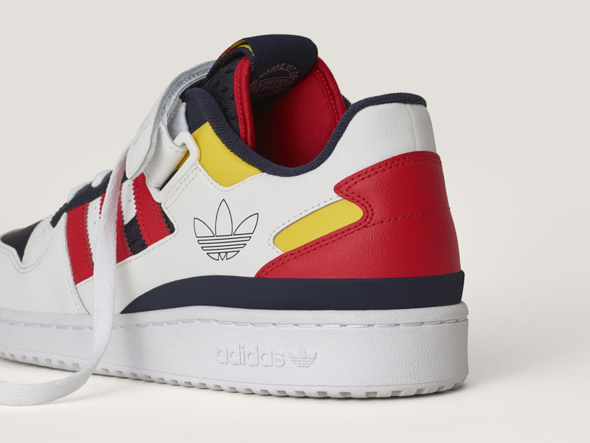 また、ベーシックな「FORUM LOW」は、ホワイト、ネイビー、レッド、イエローのビビッドなカラーリングが、クラシックな雰囲気を高めています。