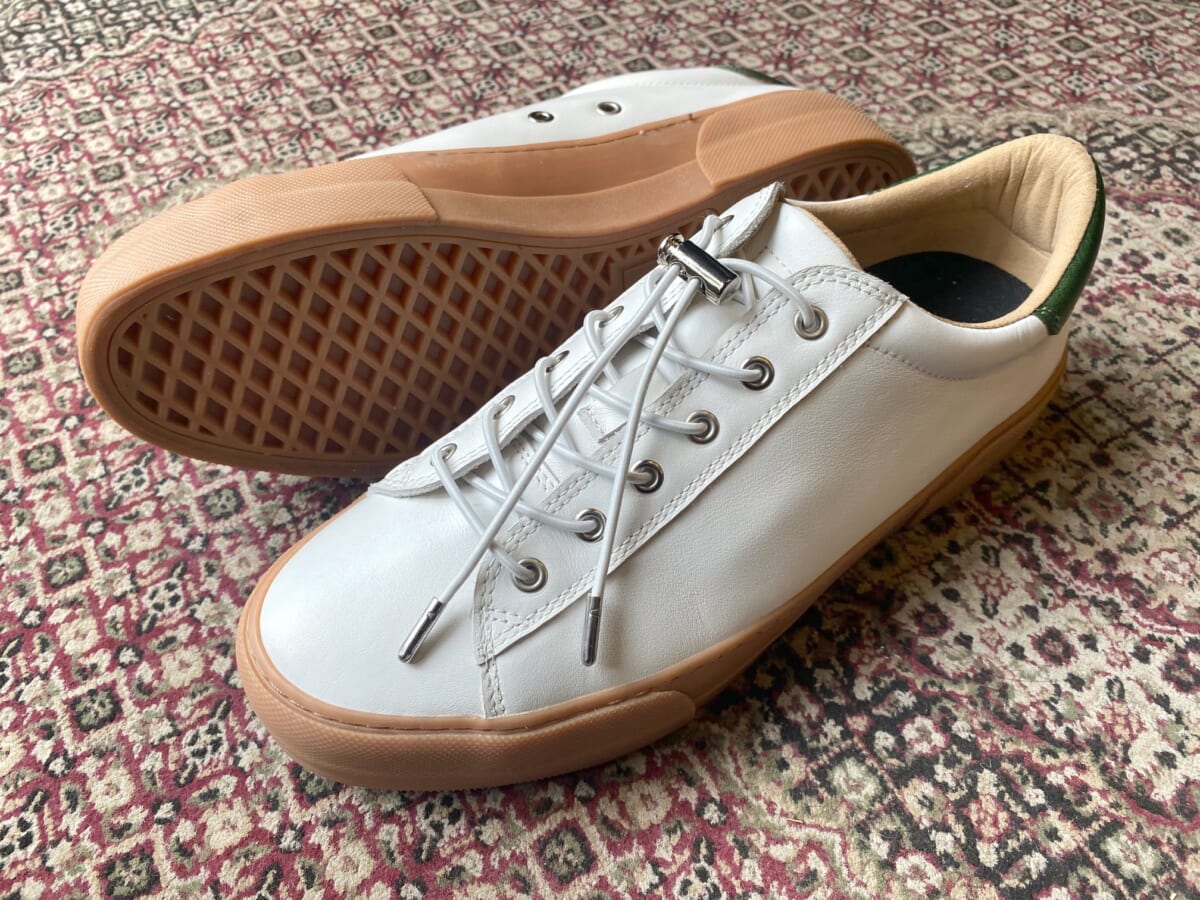 とても上品なルックスで、コーディネートやシーンを選ばず使える一足となっていますね。今回紹介しているホワイト/ガム/グリーンカラーの他に、3色あります。シンプルで大人な雰囲気なので、リゾートスタイルなどちょっと気取った休日の足元にもピッタリかと思いますよ!