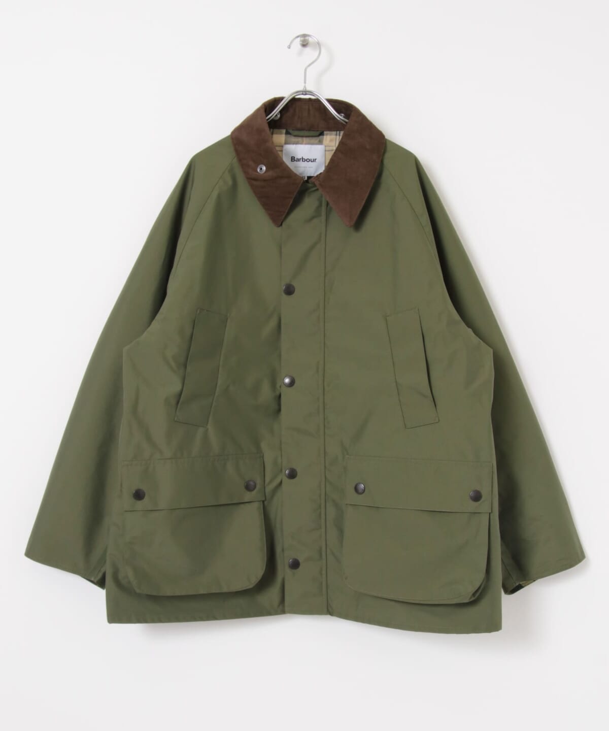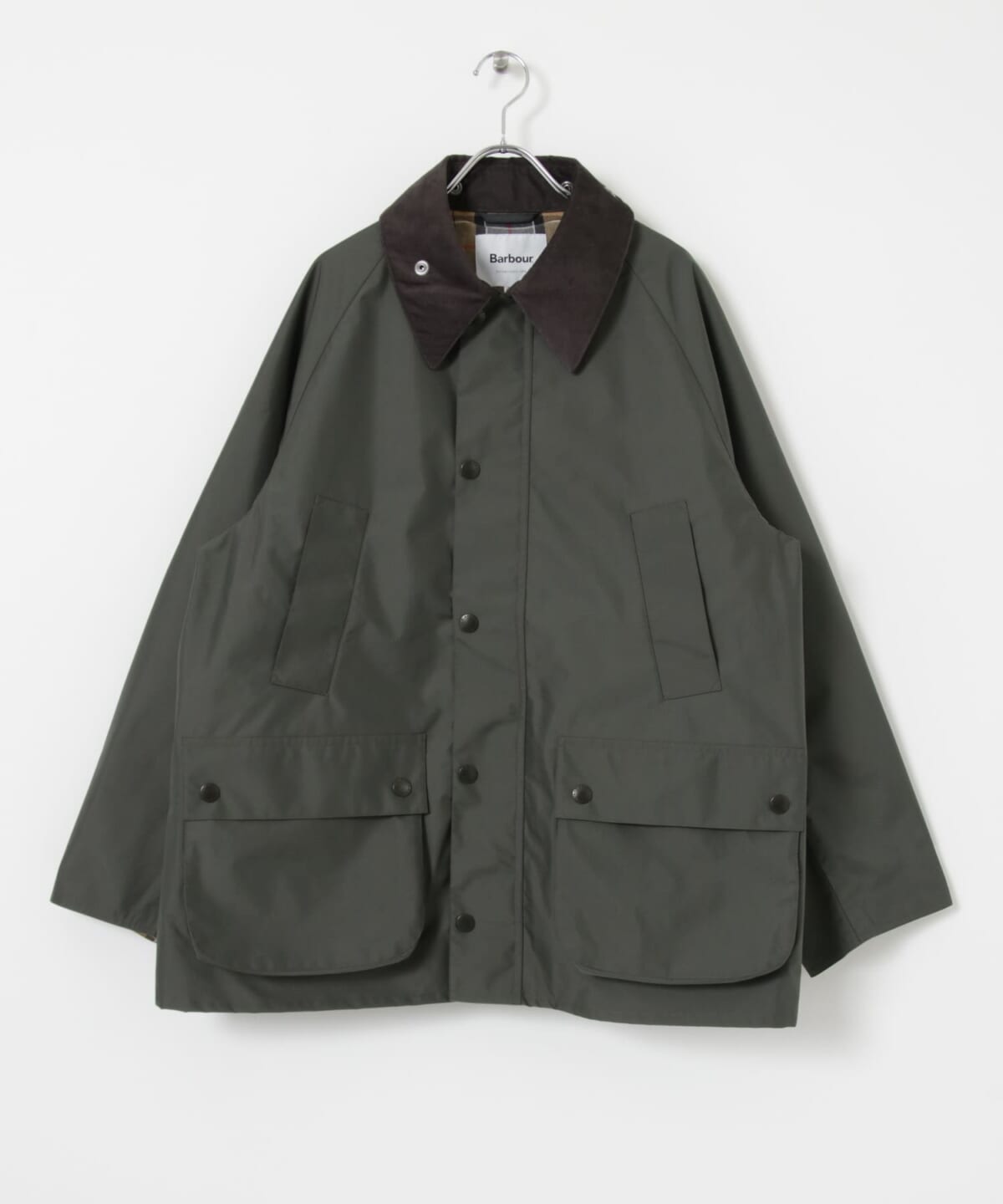 表地は一般的なバブアーのオイルドコットンではなく、撥水性のある2レイヤーナイロンを採用し、軽やかに仕上げています。汚れやほこりが落ちやすいように襟部分は太畝から細畝に変更し、風除けでもある袖のリブも排除し、スマート仕様に。新たなビジネスシーンでの提案として、よりクリーンな装いで幅広く使える“新たな時代”のアイテムです。