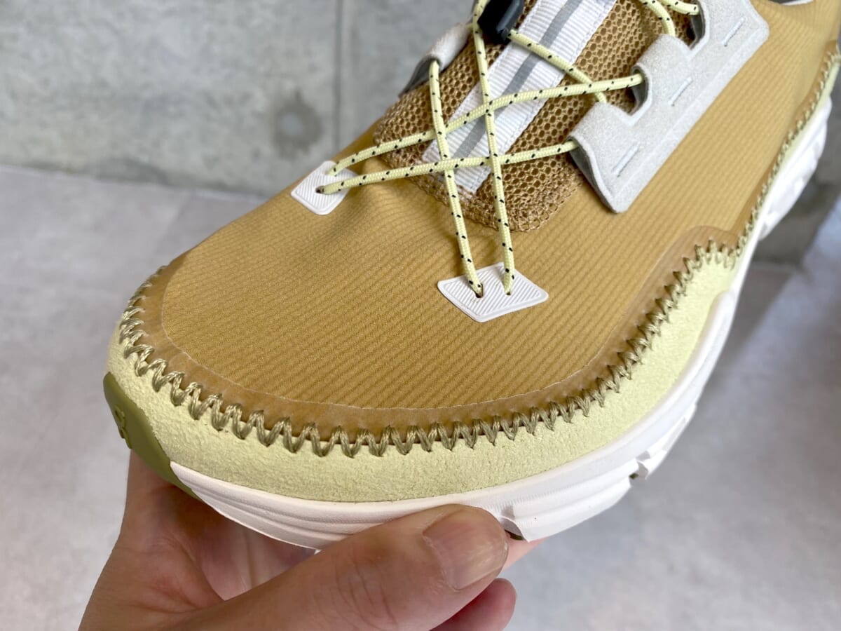 Onのラインナップで初のハイブリッド・アウトドアシューズとなる本作は、タウンユースとしてはもちろんのこと、長距離の移動や、旅先に持って行くシューズとしても大活躍する一足ですね。しかもモカシンステッチのアクセントもいい感じ! どことなくネイティブな雰囲気も新鮮ですね。秋の行楽のお供にぜひ!