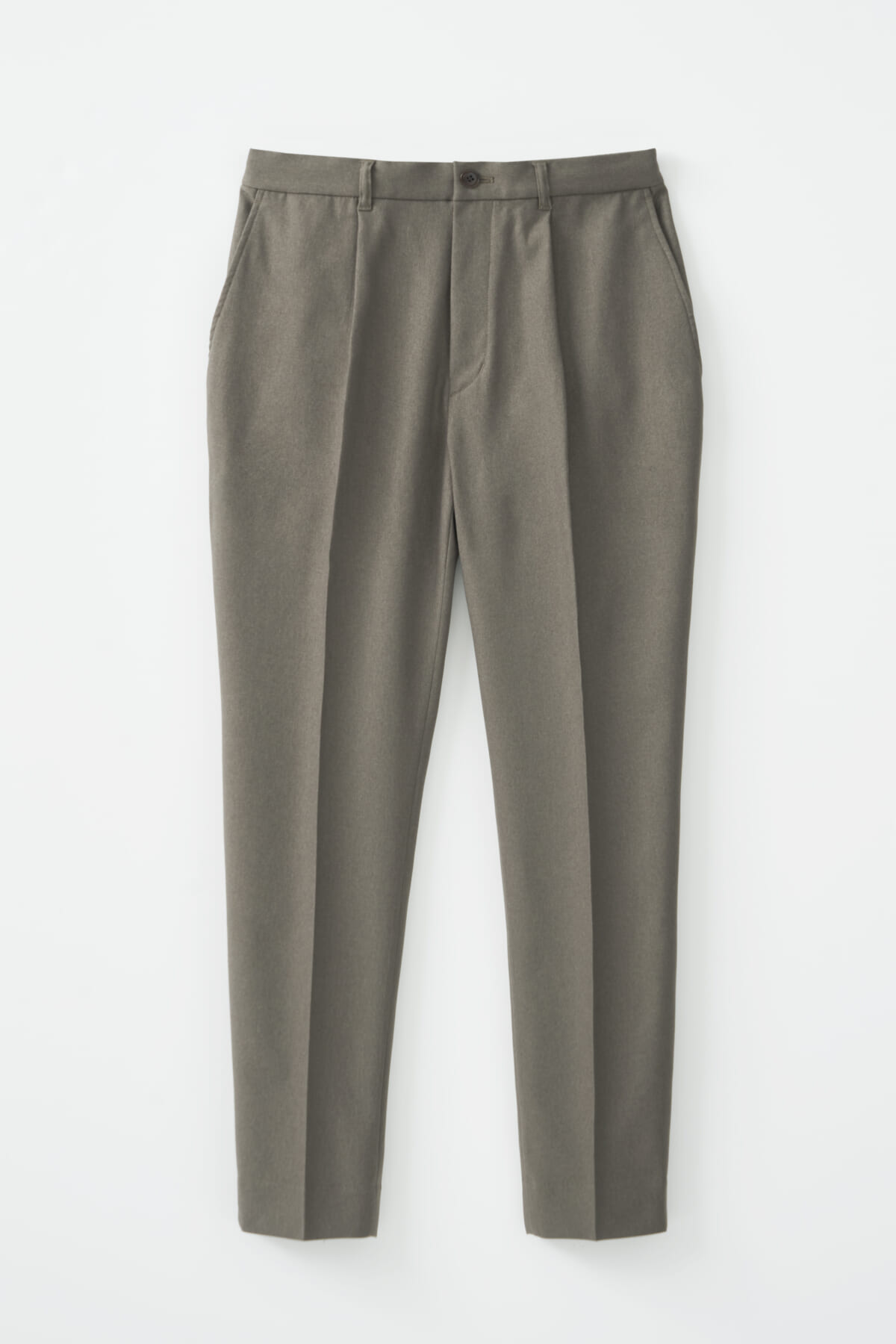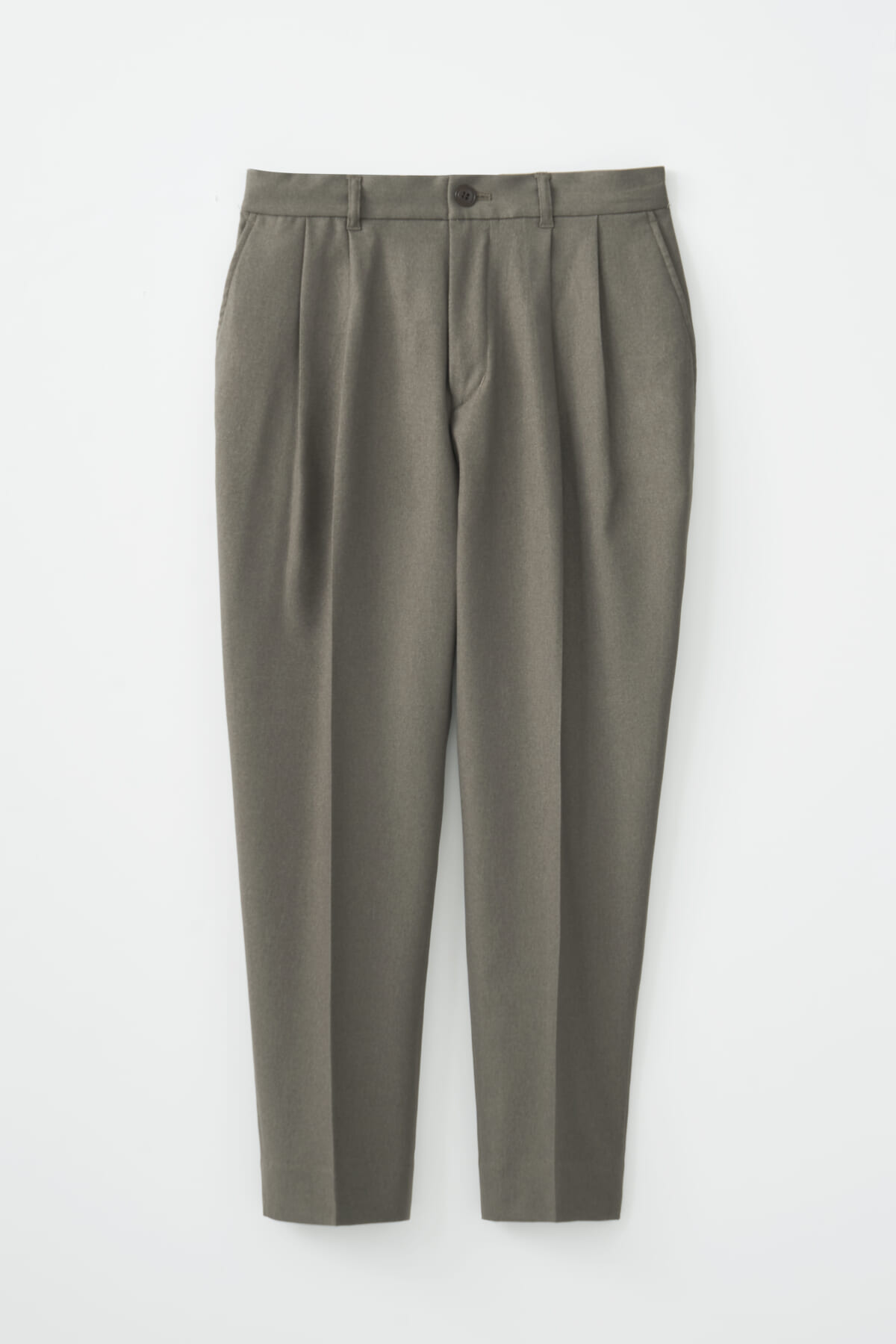 パンツは「プレーンフロントパンツ」や「1プリーツパンツ」、「2プリーツパンツ」とパターンは3種類。ウェストはサイズを調整しやすくするために、バックはゴムシャーリングを入れ、更にドローコードで結べるようにしてあります。ベルトループも付いているので、ベルト着用も可能です。
