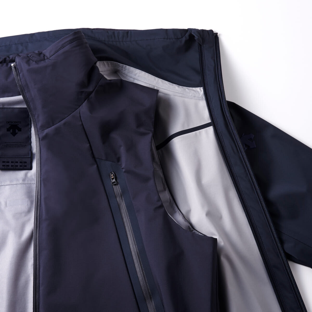 「2 IN 1 INTEGRATED DOWN JACKET」は、防水性と軽量性に優れた3レイヤー素材のアウターシェルジャケットと取り外し可能なフードと、ライナーダウンベストが組み合わさった2 in 1ハイスペックジャケットです。特殊バルブを使い、暖かい環境であれば空気を抜き、寒い環境であれば空気をより多く取り込むことで衣服内の温度調整に役立ちます。