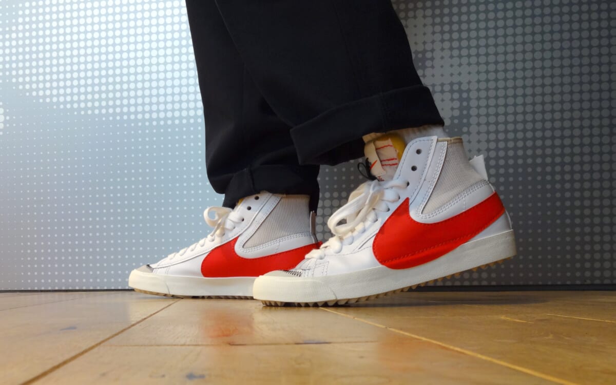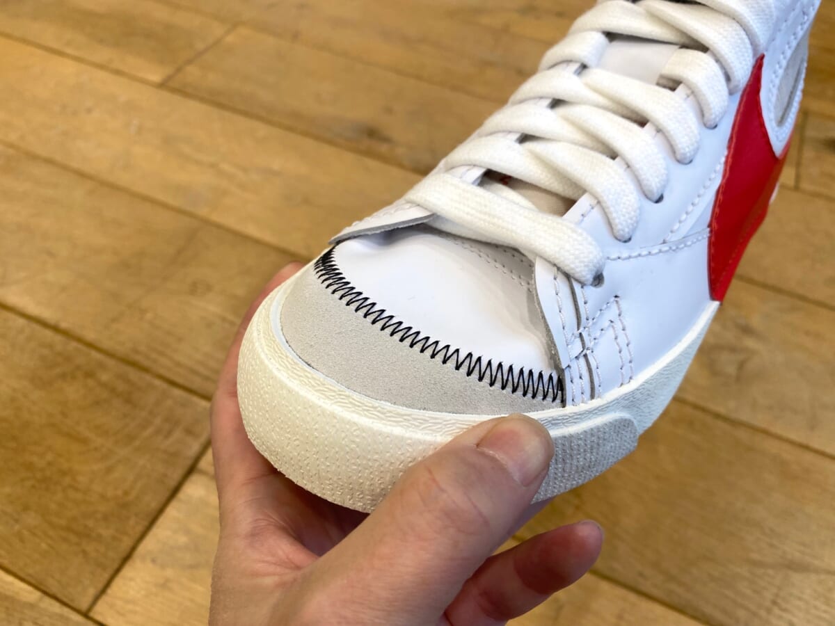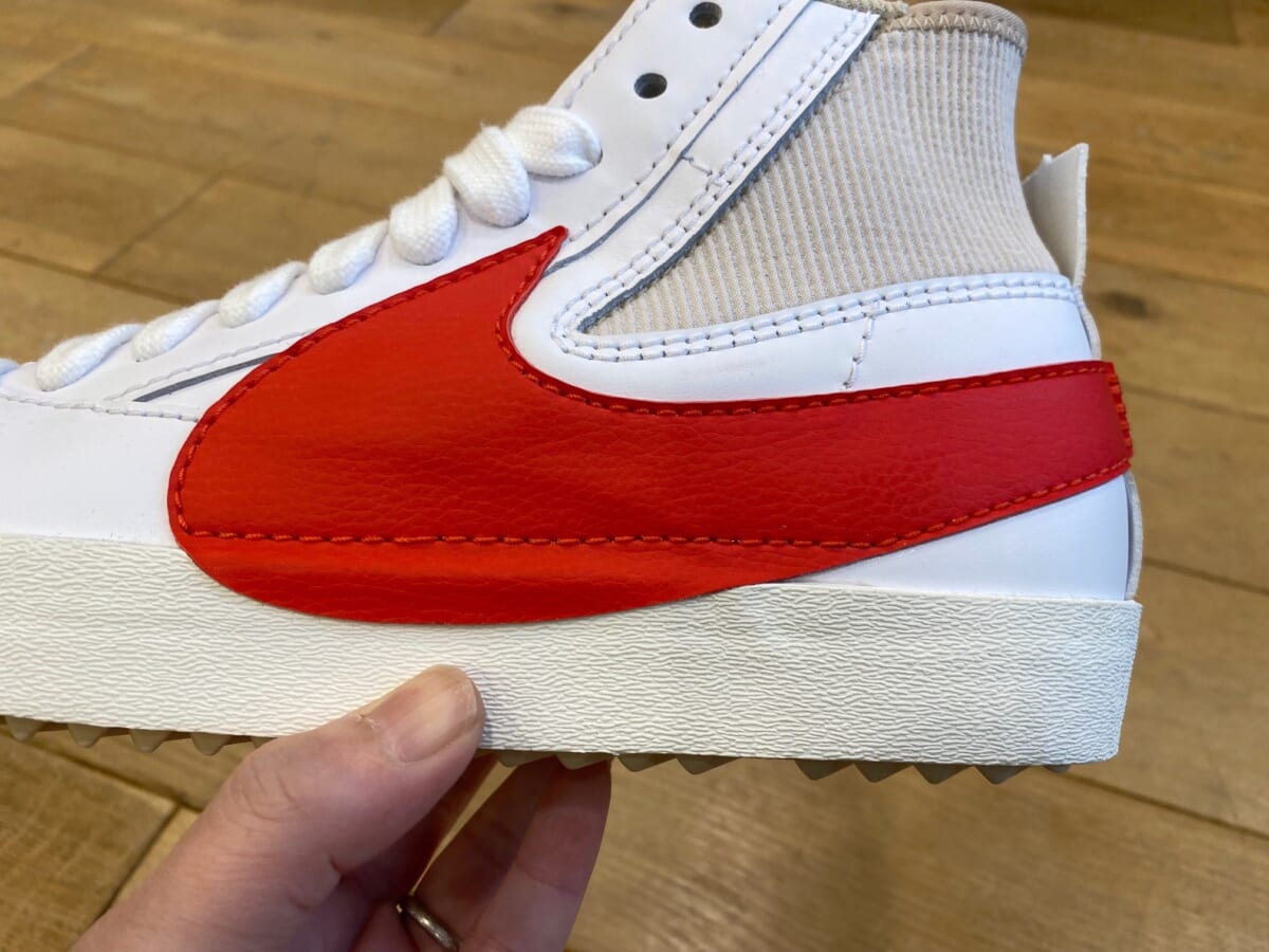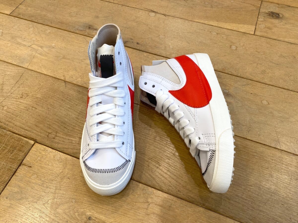 そんなブレーザーと言えば、サイドに設けられた大きめなスウッシュが特徴的ですが、今季、その特徴をさらに強調して“ブレーザーらしさ”を追求した一足「ナイキ ブレーザー MID ’77 ジャンボ」がリリースされました。しかもアッパーのミッドカット部分に伸縮性の高いラバーパーツを設けるなど、ブレーザーのウィークポイントもしっかりと補っています!