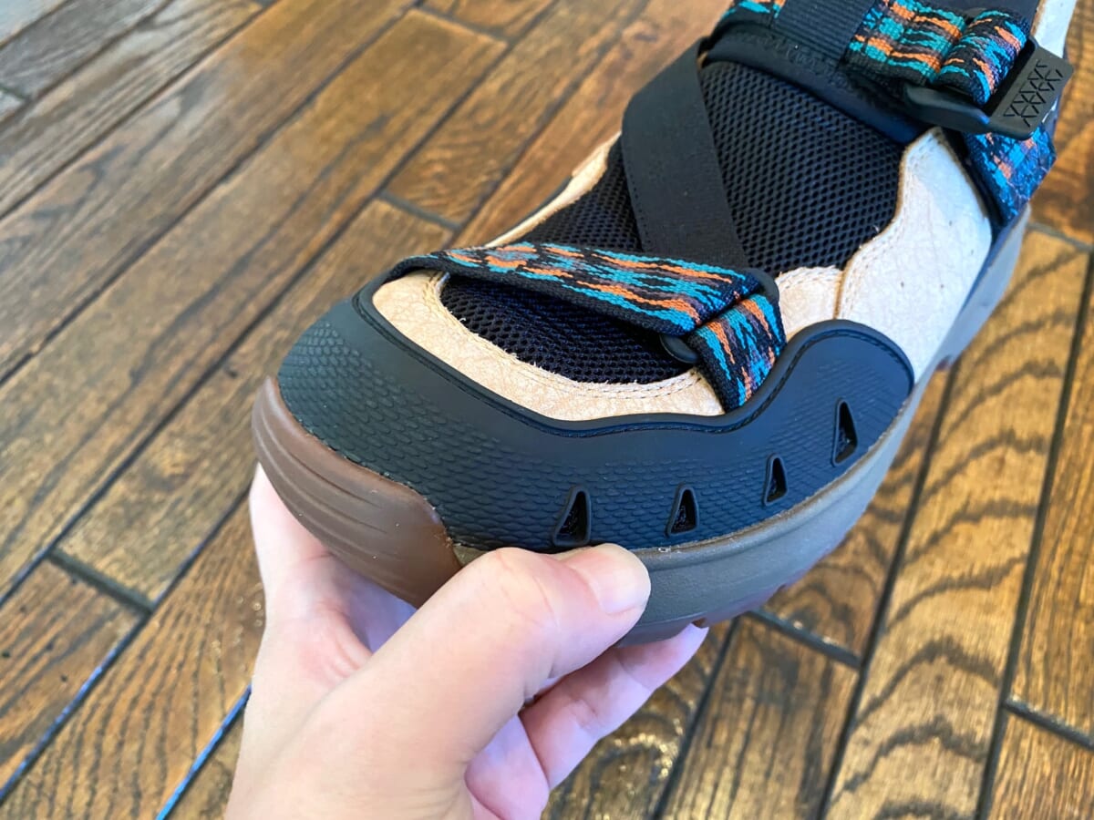 丸みを帯びたクラシックなフォルムが印象的ですね! テバを象徴するオリエンタル柄のストラップもアクセントに効いています。水陸両用なのでストリートはもちろん、来たる春の行楽に向けて一足早く備えるのもありですよ。