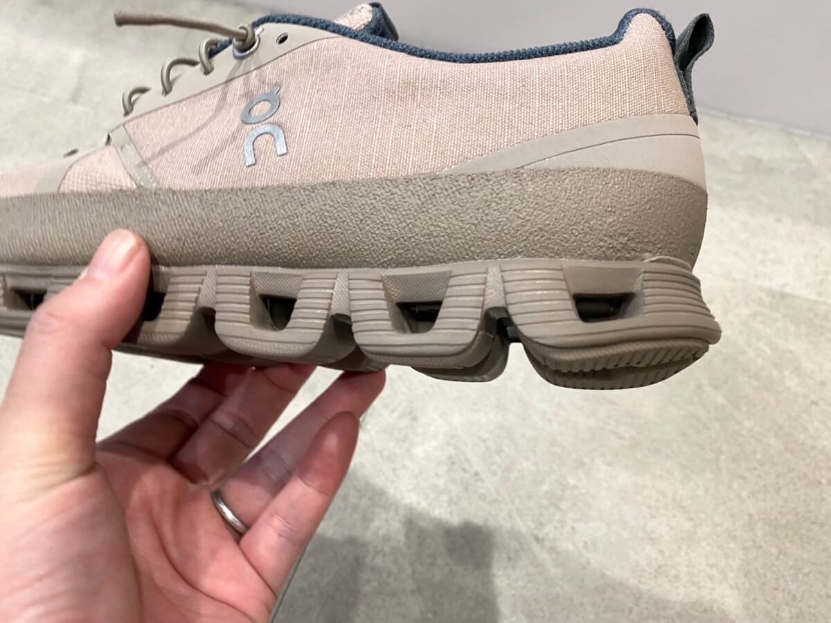 クラウドならではの軽快な履き心地と、無骨でワイルドなルックスが絶妙にマッチしています。ミリタリーからインスパイアされたという素材使いで、どことなくタクティカルシューズっぽい雰囲気も溢れます。デイリーユースからアーバンランまで幅広く活躍するので、迷った時には間違いのない一足ですね!